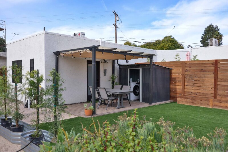 Property Id: 2310692 Your Monthly Rental in San Diego - Newly remodeled 2-bedroom, 1-bath home with AC - Peaceful atmosphere ideal for monthly stays - Suitable for professionals, couples, and families - Prime central location close to major attractions - Walkable neighborhood with cafés, shops, yoga, and dining - 2023 modern upgrades throughout - Free and convenient street parking - Exterior security cameras for added peace of mind Key Features for Extended Stays - Two stylish bedrooms with comfortable beds and calming décor - Dedicated workspace with monitor—ideal for remote workers - Fully equipped kitchen with modern appliances - In-unit washer and dryer with ample laundry space - Private backyard with grassy area and outdoor dining under a pergola - Fast WiFi + Netflix on a 4K TV - Walkable access to Normal Heights and Kensington cafés, breweries, and shops Bedrooms Both bedrooms are thoughtfully designed for long-term comfort, featuring supportive mattresses, soft linens, and serene décor to promote restful sleep throughout your stay. Bathroom A sleek, European-inspired bathroom offers a modern cabin-style shower, providing a refreshing and efficient space suitable for daily routines during an extended stay. Kitchen The fully equipped kitchen includes an oven, stove, dishwasher, microwave, refrigerator, and essential cookware. The dining area seats four, making everyday meals and morning coffee convenient and enjoyable. Living Room The bright, inviting living room offers a comfortable space to unwind, read, work, or stream your favorite shows after a long day. Perfect for maintaining a home-like routine during your monthly stay. Private Backyard Enjoy a private outdoor area featuring a shaded pergola, dining setup, and spacious grassy lawn. Ideal for relaxing, working outdoors, or casual gatherings in the California sunshine. Guest Access Guests have full access to the entire home and private yard, ensuring comfort, privacy, and convenience throughout their stay.