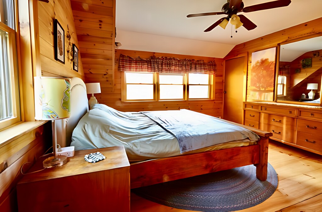 Property Id: 2444686 Private 3 bedroom house with sleeping loft, finished basement. House is on 15 acres of forest with pond and gardens. Woodstove, screened in porch, wood fired hot tub. Access to hiking & xc skiing trails. Looking for friendly neighbors.