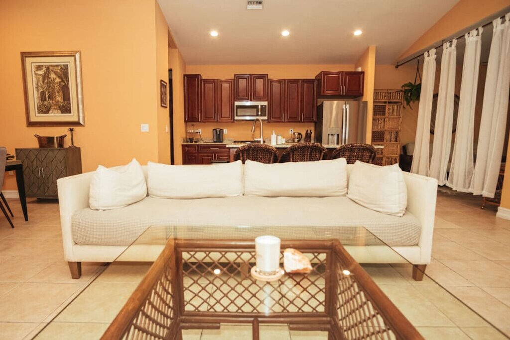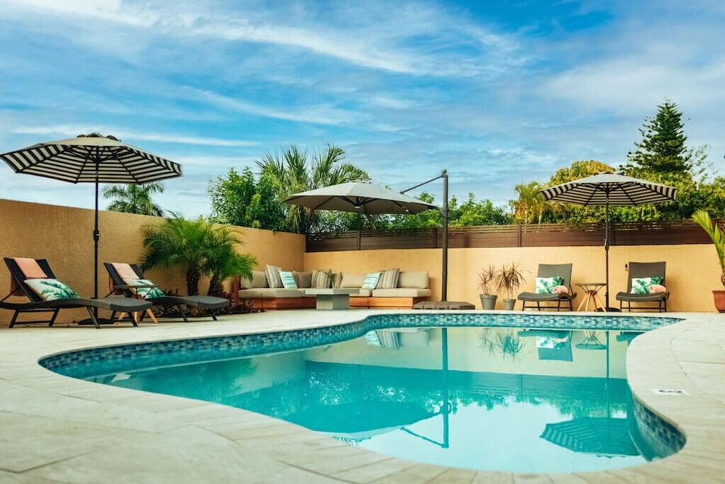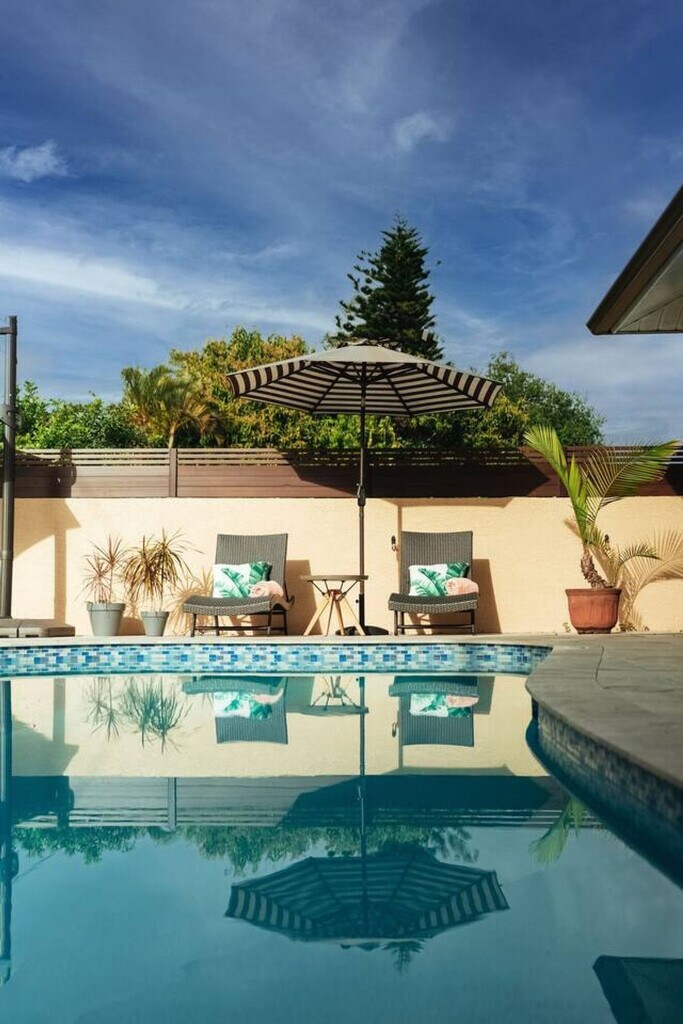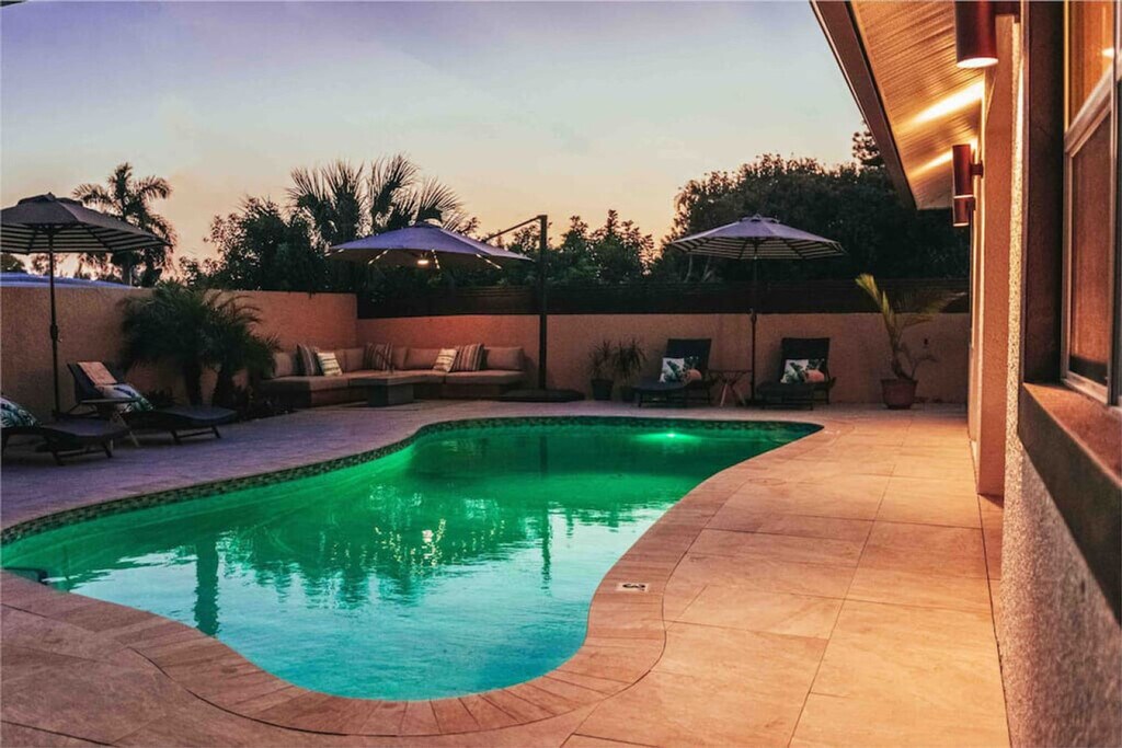 Welcome to Naples Paradise, a newly remodeled retreat perfect for friends and family. Nestled in a quiet and safe area, this home is just a 5-minute drive to 5th Avenue Downtown and 10 minutes to 3rd Avenue and the beach. The house features a newly remodeled large heated pool, an outdoor shower, a dining area, a bar, a grill, lounge chairs and umbrellas, and a spa-like master suite. Each bedroom offers memory foam beds, smart TVs, and a dedicated workspace. The home accommodates up to eleven guests with three bedrooms, a flex space sunroom with a full-size futon bed and a desk, and a comfortable, large living room couch. An outdoor shower and restroom within the tropical cabana serve as the full third bathroom. A memory foam twin bed can be arranged upon request and host approval. The pool patio features an outdoor dining area, a commercial grill, three umbrellas, a sectional couch, five lounge chairs, a cabana with a bar and kitchenette sink, and a newly remodeled pool. Parking is available for up to four cars and a decent-sized boat on the driveway and on the street. Laundry is available onsite, and beach gear is provided for your convenience. Located in a safe and quiet residential area just off 41, the home is conveniently close to restaurants and Walmart. Downtown is a mere 5-minute drive, and the beach is only 10 minutes away by Uber, Lyft, or car. A personal access code will be issued for self-check-in and access during your stay. Important house rules include no drugs or smoking of any kind, with a $300 fine for violations. No flammable items, fireworks, or portable grills are allowed, but a fantastic grill is available for use on the property. No glassware on the patio, with a $1000 fine for violations, and no glass beer bottles. A $95 fine applies for damaged comforters and $45 for sheets due to makeup stains. Guests with children are asked not to bring markers into the house. No parties or loud music outside after 11:00 PM, with a $500 fine for violations. Access to locked closets and areas inside the house, including the garage, is prohibited. A grill cleaning fee of $65 will apply if left dirty, and reports will be provided by the cleaning crew. Keep windows and sliding doors closed to prevent the AC from shutting off due to the smart thermostat system. [SI]