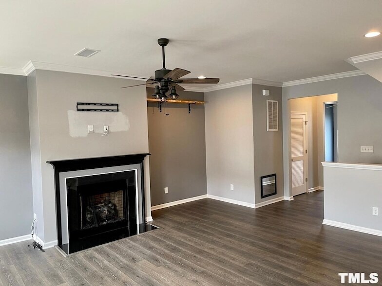 Beautifully appointed 3-story, 2-car garage luxurious Townhome in FANATASTIC Apex location! Walk to historic Apex downtown, shopping and dining! Rare floor plan with 3 suites- 1st floor Guest suite w/full bath, Primary Suite w/sitting room/huge closet and Guest suite on 2nd floor. Kitchen w/ HUGE center island, granite countertops, SS appliances, elegant dark cabinets. Oversized family room with Fireplace. Main floor has wide plank distressed hardwoods. Low maintenance and located in popular Villages of Apex neighborhood! Mins. to major highways and employers.