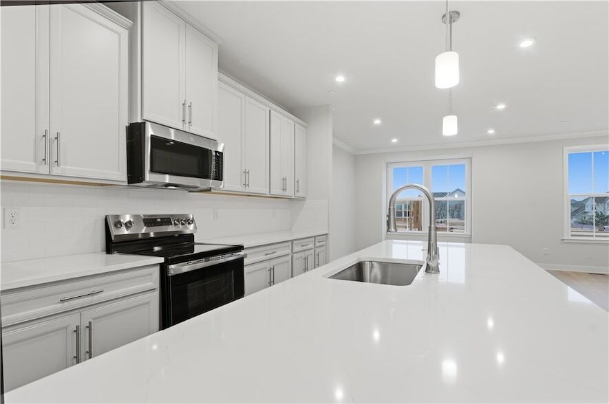 BRAND NEW CONSTRUCTION! This 4-bedroom, 3.5-bath luxury townhome with upscale finishes in Cranberry Twp is near I-79, shopping, and dining. The Breckenridge community offers trails and trees, combining convenience with natural beauty. The main floor welcomes you with warm LVP flooring, abundant natural light, recessed lighting, and soaring ceilings. The central kitchen features an extended island, soft grey cabinets, white quartz counters, stainless steel appliances, and is flanked by two huge flexible living spaces. There is a second-story deck off the rear family room, overlooking green space. Upstairs, there are 3 bedrooms, 2 full baths, and a full laundry room. The master suite features a generous walk-in closet and a luxurious bath featuring a soaking tub, custom tile shower, and double vanity. The finished lower level features a full bathroom and could be set up as a guest bedroom, gameroom, work from home space or home gym. The home features a 2 car garage & plenty of storage.