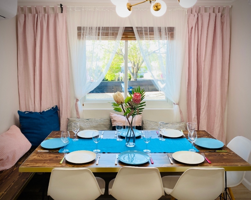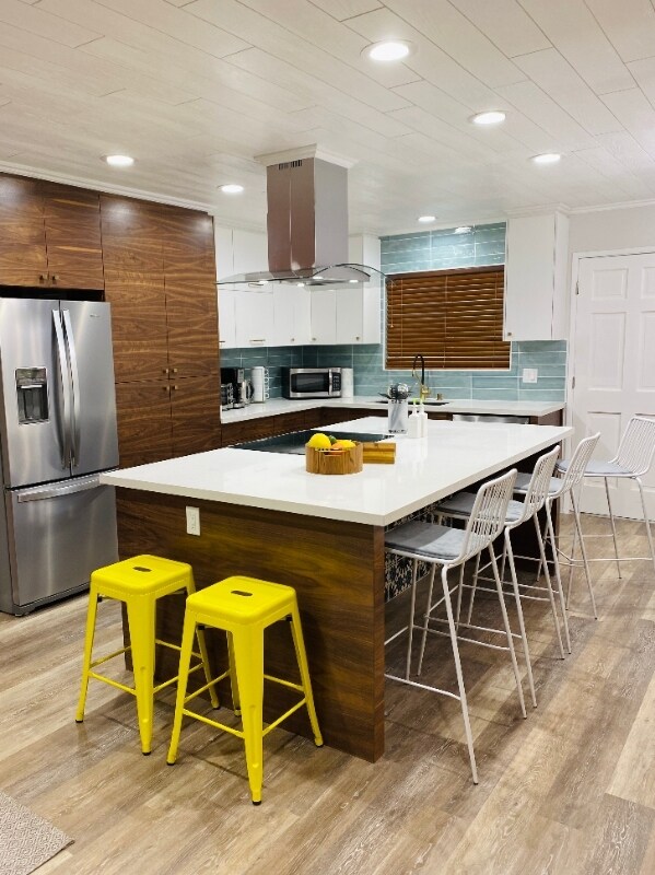 Property Id: 283216 Feel at home in our gorgeous hidden gem 1-story Mid-Century Modern **Fully Furnished** house! Free WiFi! OVERVIEW: - 4 bedrooms, 3 bathrooms - Super comfy Queen size gel memory foam beds - 3 large SmartTVs - 4 desks & desk lamps - AC/heater mini splits, room darkening curtains & sound dampening ceilings throughout - Private GATED parking up to 4 cars, remote controlled KITCHEN & DINING: - Huge kitchen/island - 8-seat dining table - Large fridge w/ice & filtered water, dishwasher, stove, oven & more - Full set of kitchenware, cookware, diningware TECHNOLOGY: - Extended Wifi indoor & outdoor access - Exterior security cameras optional - EV level 2 charging outlet (fees may apply) - Solar powered GREEN home - Tankless water hear CLEANING & LAUNDRY: - In-unit large capacity LG washer/dryer OUTDOOR: - Private front patio w/ custom built Dakota fire pit, large playing area w/ hammock & lounge chairs Inquire before applying and for seasonal pricing for shorter term stays.