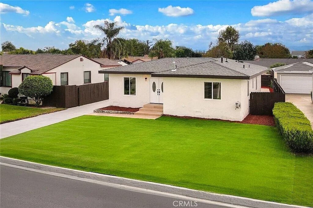 Welcome to this beautifully renovated single-story home in a quiet and desirable Monrovia neighborhood. The bright, open floor plan features new flooring and recessed lighting, creating a seamless flow between the living room, dining area, and remodeled kitchen. The modern kitchen offers quartz countertops, stylish cabinetry, stainless steel appliances, and a spacious peninsula ideal for cooking and entertaining. The home includes four comfortable bedrooms and three updated bathrooms with floating vanities, elegant fixtures, modern tile, and custom glass showers. Situated on a generous lot, the property features a well-maintained front yard, a long private driveway, and a detached two-car garage. The spacious backyard provides plenty of room for entertaining, gardening, or relaxing in the California sunshine. Conveniently located near parks, schools, shopping, dining, and major freeways, this move-in-ready home offers modern comfort and everyday convenience in one of Monrovia’s most charming communities. Furniture shown in photos is for display purposes only.