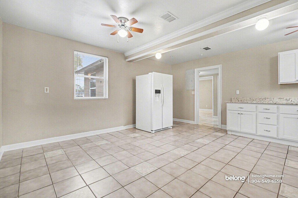 Clean lines, durable tile flooring, and ceiling fans define the shared living spaces of this 3-bedroom, 1-bath home, creating a practical layout that supports everyday routines. Natural light enters through multiple windows, and neutral finishes keep the interior adaptable for a range of furnishing styles. The living area offers generous floor space for seating or a dining setup, supported by tile flooring that continues into the kitchen. Cabinetry provides ample storage, and spacious counters allow room for meal prep and daily use. Appliances are arranged for straightforward functionality, helping keep this space easy to navigate and maintain. Outdoors, a dedicated storage shed in the yard adds useful space for tools, equipment, or seasonal items. This home sits directly across the street from a community park that regularly hosts neighborhood and youth events, offering a strong sense of connection right outside your door. Notably, it has long been regarded as a safe haven, with no history of break-ins reported. Full tennis courts are available at the park for recreation and exercise. Daily conveniences are close by along Soutel Drive and Moncrief Road, with grocery stores, local dining spots, and shopping centers nearby, while downtown Jacksonville remains a manageable drive away. *Our homes come as-is with all essentials in working order. Want upgrades? Request it through the Belong app, and our trusted pros will take care of the rest!