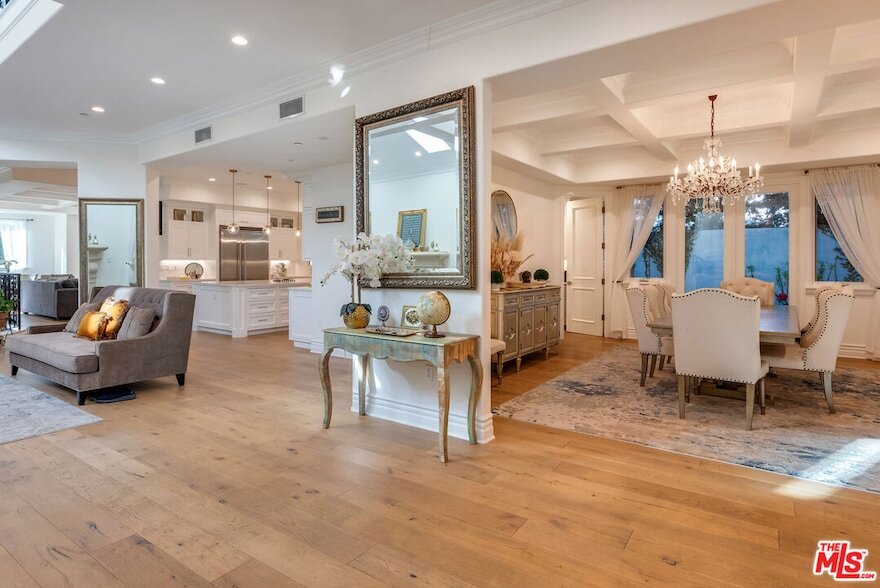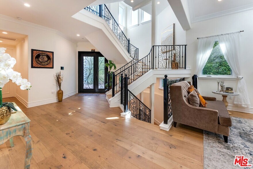 Wonderful opportunity to live in Brentwood on the most walkable street! This Mediterranean home is newer - 3 levels, huge entry, open floorplan, large kitchen with center island and separate "cooks kitchen area". Family room with French doors opening to yard. Formal dining room and guest suite on main level. Upstairs is a large primary suite with large bathroom and dual closets. There are 3 additional ensuite bedrooms all high ceilings and wood floors throughout. The lower level has a theatre and family room and 2 additional bedrooms ensuite (could be a gym) and laundry is located there. The yard accommodates outdoor dining, a basketball area and a small office or additional storage. The home is gated with a 3 car garage and plenty of parking. Enjoy all the amazing cafes and restaurants along San Vicente as well.
