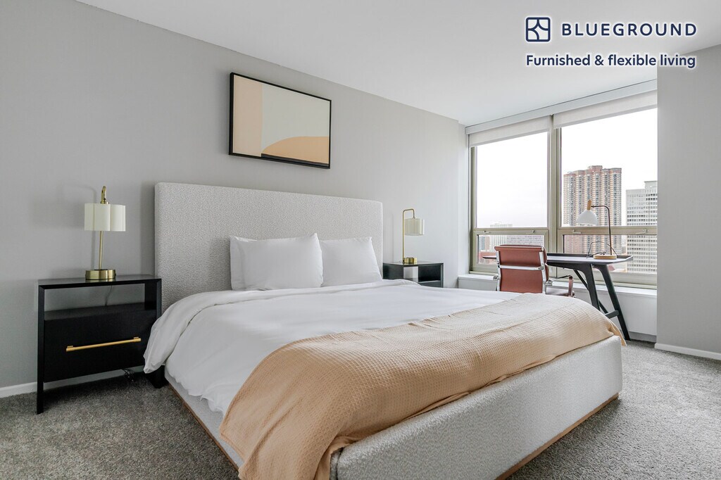Show up and start living from day one in Chicago with this pretty two bedroom Blueground apartment. You’ll love coming home to this thoughtfully furnished, beautifully designed, and fully equipped Lake View East home with stunning views over the city. (ID #CHI717) The advertised rate of $3,160/month is the lowest available price, based on a 6 month(s) and 4 day(s) stay with a move-in date of August 1, 2026. If you’re looking for a 1-year stay, the rate is $3,570/month. Rates vary depending on the duration of stay, season, and other parameters. For exact pricing and additional pricing components, please visit our website and enter your desired move-in and move-out dates. The rate is applicable when billed upfront; it can be higher if billed in multiple payments. Brokers are welcome to reach out. Were you looking for an unfurnished lease? Try Blueground instead and upgrade from unfurnished to furnished living: - Furnished at rates comparable to unfurnished - No setup or furniture costs - save thousands - Move-in ready - save time, just bring your suitcase Designed with you in mind Thoughtfully designed with bespoke finishes, modern furnishings, and a fully equipped kitchen, you’ll enjoy that “I’m home” feeling with this Blueground apartment. Whether you’re lounging in your sophisticated living room streaming the latest and greatest entertainment on the smart TV or premium wireless speaker, or getting some well-earned rest on the superior quality mattress with luxury linens, you’ll fall in love with everything this Lake View East apartment has to offer. Sleeping arrangements King Bed, 70.8in/180cm Queen Bed, 63in/160cm Amenities Building amenities unique to this two bedroom apartment include an on-site: - Doorman - Dryer in building - Elevator - Swimming pool - Washing machine in building - Lounge Arrival and ongoing support The entire apartment is yours to enjoy! Throughout your stay, you’ll have access to our Client Experience team through the Blueground App. You can schedule additional cleanings, submit maintenance requests, and view our neighborhood recommendations with just a few taps. We’ll share all details upon confirmation of your stay. Other things to note Building amenities may have an extra cost. This Blueground apartment has flexible lease options, allowing you to book it for one month, a year, or more. We take great pride in ensuring every photo displayed is shot in our own units with our actual furnishings. That said, we regularly refresh our decor and furniture arrangement, which may differ from what’s pictured. [SI]