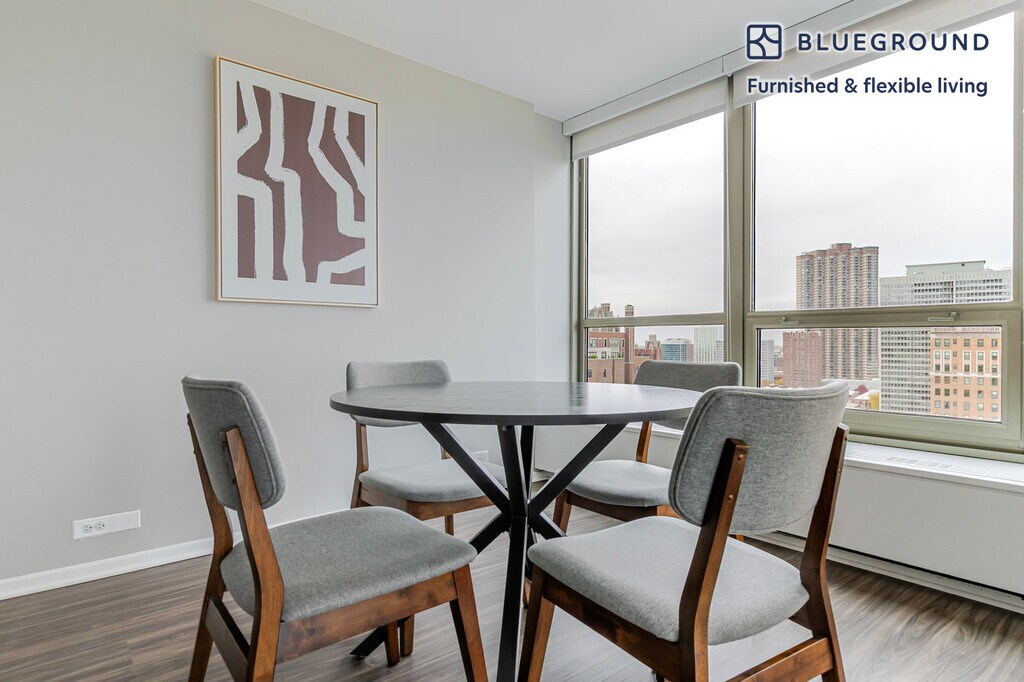 Show up and start living from day one in Chicago with this sophisticated one bedroom Blueground apartment. You’ll love coming home to this thoughtfully furnished, beautifully designed, and fully equipped Lake View East home with stunning views over the city. (ID #CHI715) The advertised rate of $1,990/month is the lowest available price, based on a 1 month(s) and 22 day(s) stay with a move-in date of February 1, 2026. If you’re looking for a 1-year stay, the rate is $2,530/month. Rates vary depending on the duration of stay, season, and other parameters. For exact pricing and additional pricing components, please visit our website and enter your desired move-in and move-out dates. The rate is applicable when billed upfront; it can be higher if billed in multiple payments. Brokers are welcome to reach out. Were you looking for an unfurnished lease? Try Blueground instead and upgrade from unfurnished to furnished living: - Furnished at rates comparable to unfurnished - No setup or furniture costs - save thousands - Move-in ready - save time, just bring your suitcase Designed with you in mind Gorgeous furniture, fully equipped kitchen, smart TV, and a premium wireless speaker are just a few of the amenities you’ll find inside this one bedroom apartment. Ideally located in Chicago, you’ll find a lot to love outside as well. When you’re ready to relax, you’ll be happy to discover every Blueground bedroom comes with superior quality mattresses, luxury linens, and cozy towels. We handle everything so you can simply show up and start living. Sleeping arrangements Queen Bed, 63in/160cm Amenities Building amenities unique to this one bedroom apartment include an on-site: - Doorman - Dryer in building - Elevator - Swimming pool - Washing machine in building - Lounge Arrival and ongoing support The entire apartment is yours to enjoy! Throughout your stay, you’ll have access to our Client Experience team through the Blueground App. You can schedule additional cleanings, submit maintenance requests, and view our neighborhood recommendations with just a few taps. We’ll share all details upon confirmation of your stay. Other things to note Building amenities may have an extra cost. This Blueground apartment has flexible lease options, allowing you to book it for one month, a year, or more. We take great pride in ensuring every photo displayed is shot in our own units with our actual furnishings. That said, we regularly refresh our decor and furniture arrangement, which may differ from what’s pictured. Also note - This apartment is in close proximity to a school, so you can expect noise from time to time - This apartment is located on a busy street [SI]