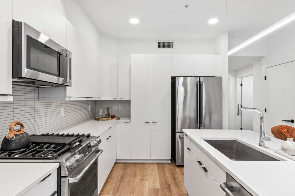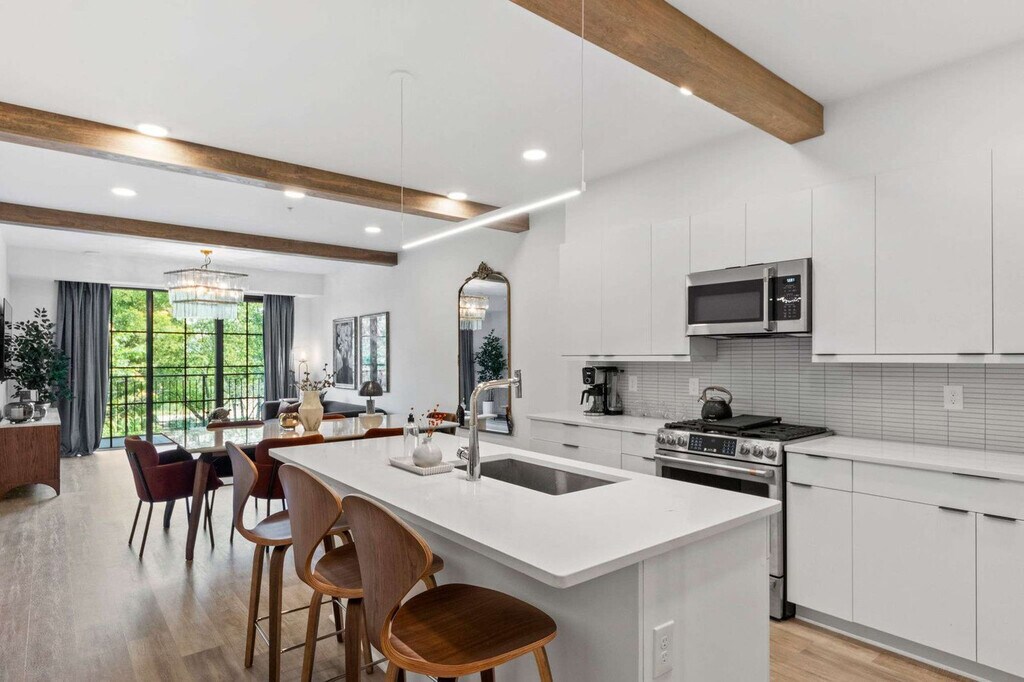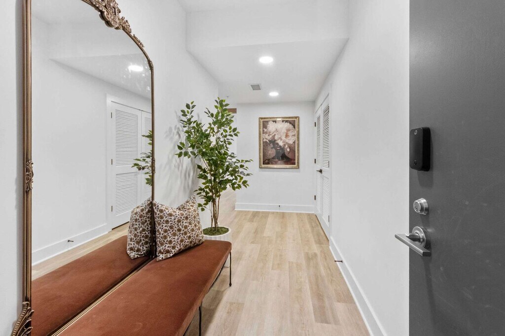 Feel at home in this stylish and spacious 2-bedroom, 2-bathroom modern loft, the Bleau Vine Luxe Suite, located in the heart of downtown Atlanta. Thoughtfully designed for relocation clients, corporate travelers, production crews, and extended stays, this suite combines modern comfort with elevated style. It features modern, designer furnishings, a beautifully styled living room, a sleek dining area, and a fully equipped kitchen. Premium linens, plush bedding, climate control, and smart TVs throughout the space ensure a relaxing and enjoyable stay. For seamless mid- and long-term stays, a washer and dryer are included. On-site and street parking are available. Located in the upscale, walkable district of Castleberry Hill, this suite places you moments from Atlanta’s most iconic destinations, including Mercedes-Benz Stadium, State Farm Arena, the Georgia World Congress Center, and the Georgia Capitol Building. The neighborhood also offers unbeatable proximity to major academic institutions, including the Atlanta University Center (Spelman, Morehouse, Clark Atlanta) and Georgia State University. Surrounded by boutique cafés, art galleries, production studios, and curated dining, Castleberry Hill delivers a refined urban atmosphere. Nearby access to MARTA transit and quick rideshare pick-up are available. Hartsfield-Jackson Atlanta International Airport is approximately 15 minutes away. Smoking is not allowed inside the unit. A noise monitor is installed for sound level detection only and does not record conversations. An exterior security camera is present. An ID is required before check-in. A train is located nearby, and occasional noise may be heard. Parties are not allowed at the property. Production shoots and photo shoots are permitted with prior written approval. Fast Wi-Fi and a dedicated workspace make this suite ideal for remote work and virtual meetings. [SI]