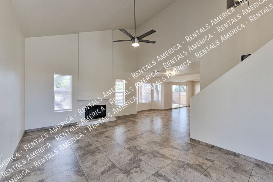 Welcome to this elegant two story residence that balances modern finishes with desert serenity, all set against a backdrop of gorgeous mountain views. Step inside to discover a luminous open floor plan accentuated by luxury plank flooring upstairs, fresh neutral paint, and abundant natural light. The living spaces flow seamlessly, anchored by a cozy fireplace in the main gathering room. The chefs kitchen is outfitted with quartz countertops, stainless steel appliances, and generous cabinetry ideal for both everyday living and entertaining guests. Upstairs, the primary suite feels like its own private retreat with the gorgeous mountain views and additionally you will find two nice sized bedrooms that offer flexibility whether for guests, a home office, or a fitness nook accompanied by full baths and cleverly designed storage. The large backyard offers plenty of space to relax or entertain, all while enjoying wonderful mountain views. Whether you're sipping coffee under the covered patio or hosting friends for a sunset gathering, the scenery elevates every moment. Just around the corner, the community pool provides the perfect spot to cool off, unwind, and enjoy sunny Arizona days in a resort-style setting all just steps from your front door. A two car garage and low maintenance grounds complete the picture, in the desirable North Ranch community with access to Marana's top-rated schools. Experience upscale desert living in this meticulously maintained home where style and tranquility meet. Available for immediate occupancy schedule your private showing today. WE LOVE PETS!!.........Extended Lease Available. One-Time Admin Fee: $300. Monthly Service Fee: 1% of monthly rent. Refundable Pet Deposit: $300/Pet, if applicable. Resident Benefits Package: $39/month. Helping Heroes Discount Available! Cats Allowed Dogs Allowed Garage Pets Allowed
