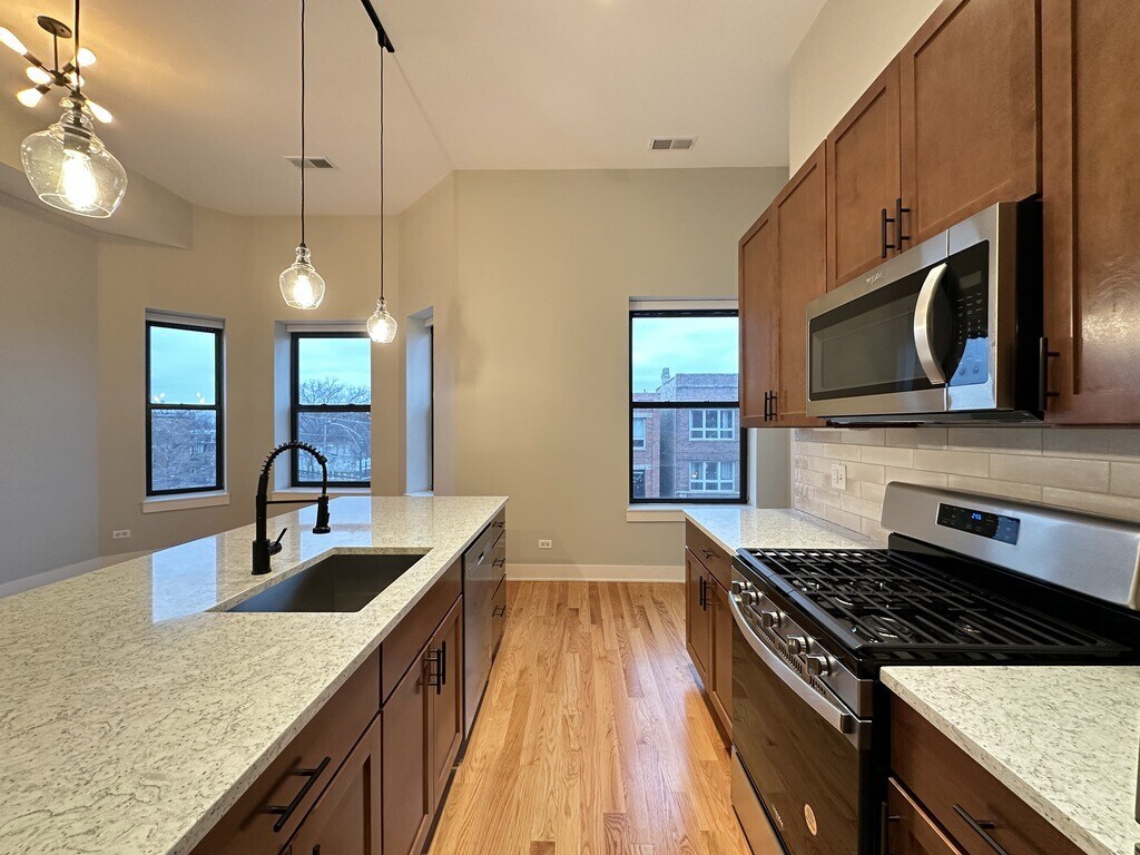 We now offer virtual video tours of all of our apartments! Schedule a virtual tour and rent this apartment from the comfort and safety of your home! Apply online! Astounding three bedroom, two bathroom in McKinley Park features modern kitchen with granite countertops, stainless steel appliances, dishwasher, microwave, island with breakfast bar, open large combination living and dining rooms, hardwood floors, spacious bedrooms, great closet space, modern bathrooms, in unit laundry, and pets are welcome! Close to 35th / Archer Orange Line stop! Won't Last Long!
