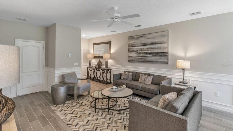 One or more photo(s) has been virtually staged. One or more photo(s) has been virtually staged. Brand New 3 Bedroom, 2.5 Bath Townhouse in Oak Hammock. This stunning townhouse features a modern eat-in kitchen equipped with stainless steel appliances, quartz countertops, and recessed lighting. The main areas boast wood look tile flooring, while the bedrooms are comfortably carpeted. The large primary bedroom includes a walk-in closet and an ensuite bathroom with a double vanity and a walk-in shower. Enjoy relaxing on the covered lanai, perfect for outdoor enjoyment. The location is convenient, with shopping and restaurants nearby. Lawn care and internet are included in this townhouse community. The tenant is responsible for interior pest control, electric (Duke Energy), and water (City of Ocala) utilities. Additionally, a pool is planned to be completed in 2025, providing even more amenities for residents to enjoy. Don't miss out on this beautiful property!