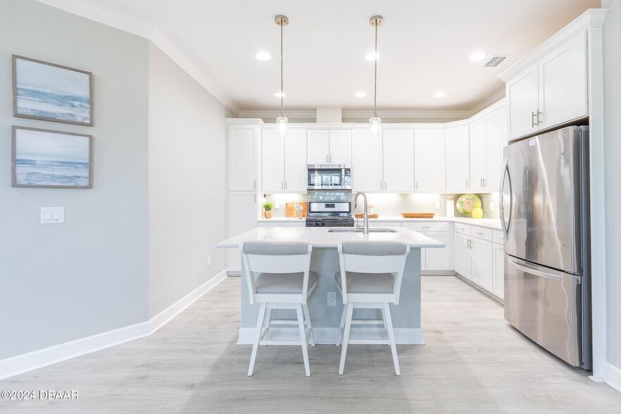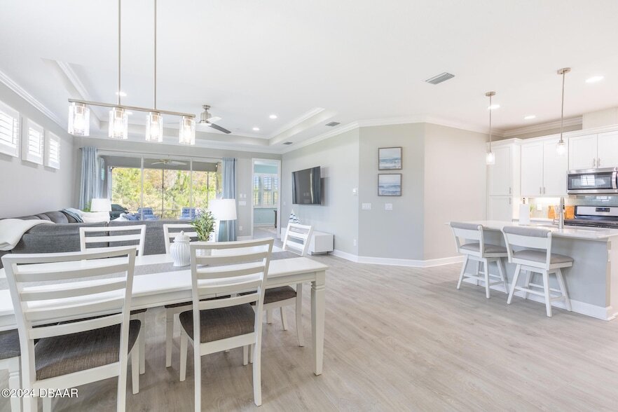 Stunning Lucia model for rent! Available March 1*Price includes utilities up to 250.00/ month. Welcome home to this Beautifully FURNISHED villa available now for rent in Fabulous Latitude Margaritaville Daytona Beach! 2 bedrooms, DEN, huge great room, laundry room with full sized washer and dryer, 2 car garage...this villa has it all! You will LOVE the coastal feel of this villa. Great location with a tranquil view of the trees. Amazing kitchen with island seating and dining area. Plenty of room to relax and enjoy time with family and friends. Experience the best of outdoor living on the extended lanai. Latitude Margaritaville is a 55+, private, gated community. 3 heated pools, 1 indoor, an outdoor sports pool and the resort style main pool. PRIVATE BEACH CLUB! Live music at the Bar and Chill Restaurant. State of the art Fins Up Fitness Center, Mango Theater, dog park, PICKLEBALL, and TENNIS. Come visit this FINtastic community. No pets