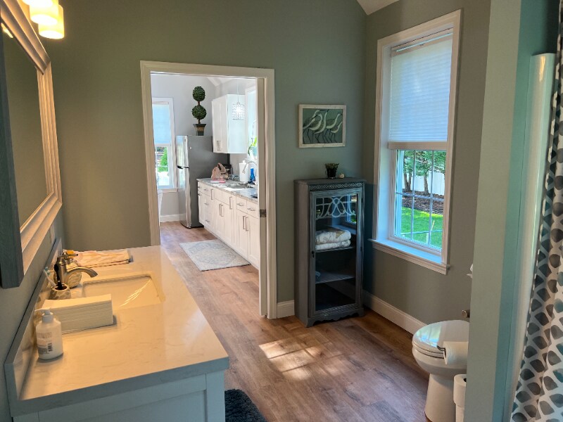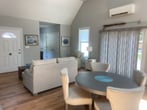 Property Id: 1321565 Fully furnished and equipped 1100 sq ft contemporary suite located on a quiet cul-de-sac. This property features an open floor plan with kitchen and living space. 1 bedroom, extra large closet, a spacious bathroom with a large marble top vanity. It also has cathedral ceilings throughout with skylights and glass sliders that open up to a beautiful private 20x12 furnished deck. All utilities included as well as internet and cable, 2 flat screen TVs, its own Washer/Dryer, stainless appliances, granite countertops, brand new furnishings throughout, and weekly cleaning from an outside source. This unit is ideal for an elderly or handicapped person as it is one level and handicapped accessible.