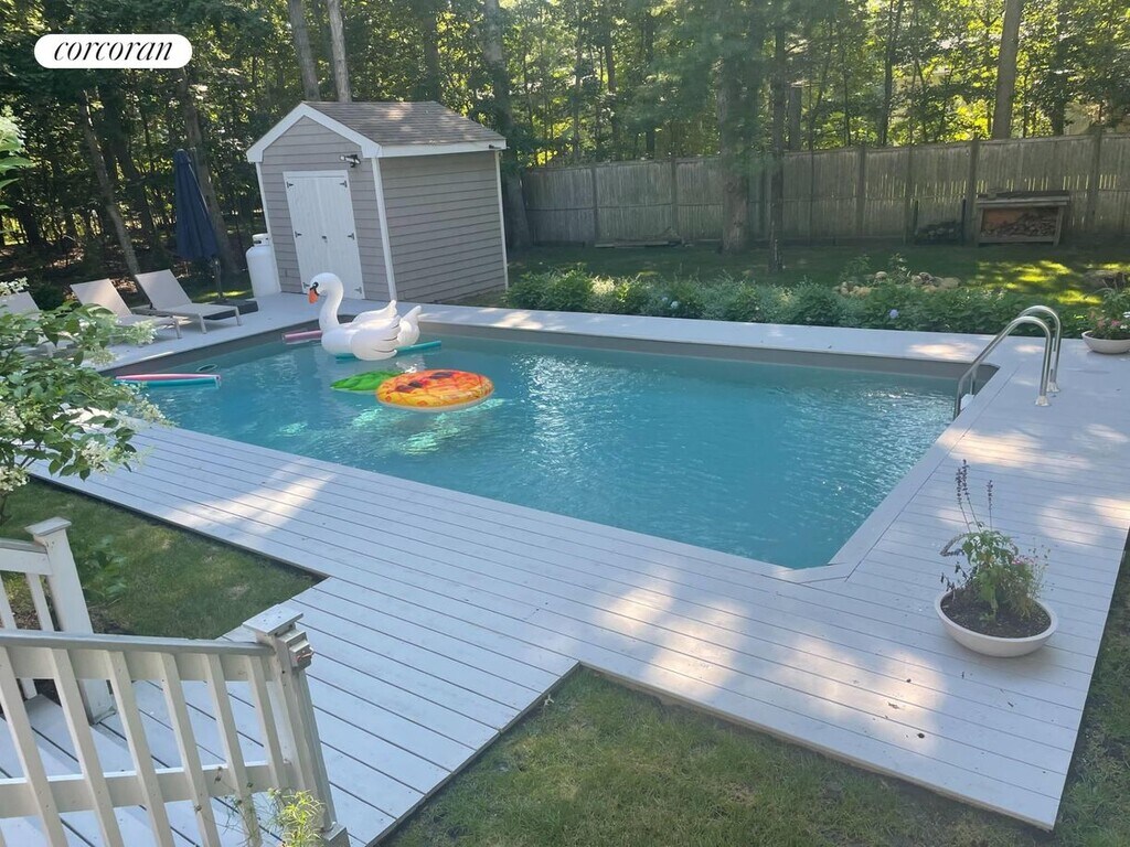 AVAILABLE SEPTEMBER, JULY 2026 AND AUGUST-LD 2026.....This 2021 renovated farmhouse-style home is graced with a sun-filled living/dining area, large new kitchen, 3 bedrooms and 2 baths. The house has a lovely front porch, large rear deck with plenty of seating as well as a beautiful pool on a private, landscaped half-acre. The house in the Clearwater Beach association with private beach rights, a private marina, a play area and more. Spend relaxing summer days by the pool or fun evenings in front of the fireplace in the wonderful East Hampton rental. There is nothing better at this price! [[Rental Registration # 24-1341]]