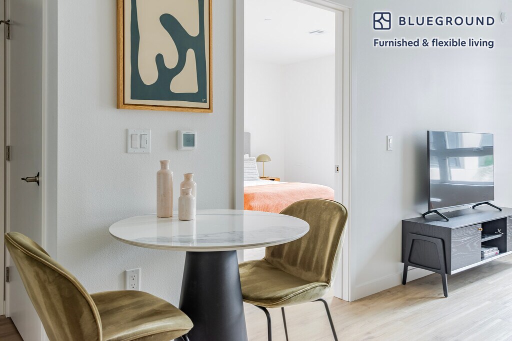 Discover the best of Santa Clara, with this one bedroom apartment in Santa Clara. It’ll be easy to simply show up and start living in this furnished apartment with its fully equipped kitchen, living room, and our dedicated, on-the-ground support. (ID #SFO2055) The advertised rate of $2,480/month is the lowest available price, based on a 2 month(s) and 22 day(s) stay with a move-in date of November 20, 2025. If you’re looking for a 1-year stay, the rate is $3,200/month. Rates vary depending on the duration of stay, season, and other parameters. For exact pricing and additional pricing components, please visit our website and enter your desired move-in and move-out dates. The rate is applicable when billed upfront; it can be higher if billed in multiple payments. Brokers are welcome to reach out. Were you looking for an unfurnished lease? Try Blueground instead and upgrade from unfurnished to furnished living: - Furnished at rates comparable to unfurnished - No setup or furniture costs - save thousands - Move-in ready - save time, just bring your suitcase Designed with you in mind Gorgeous furniture, fully equipped kitchen, smart TV, and a premium wireless speaker are just a few of the amenities you’ll find inside this one bedroom apartment. Ideally located in Santa Clara, you’ll find a lot to love outside as well. When you’re ready to relax, you’ll be happy to discover every Blueground bedroom comes with superior quality mattresses, luxury linens, and cozy towels. We handle everything so you can simply show up and start living. This apartment also offers in-apartment laundry. Sleeping arrangements King Bed, 70.8in/180cm Amenities Building amenities unique to this one bedroom apartment include an on-site: - Dryer - Elevator - Game room - Swimming pool - Washing machine - Lounge - Parking - Pets allowed Arrival and ongoing support The entire apartment is yours to enjoy! Throughout your stay, you’ll have access to our Client Experience team through the Blueground App. You can schedule additional cleanings, submit maintenance requests, and view our neighborhood recommendations with just a few taps. We’ll share all details upon confirmation of your stay. Ideally Located This furnished home is in the mid-sized city of Santa Clara which has 116,000 people living there. Many singles live in Santa Clara with 20% of the total population between the ages of 25-34. Residents of Santa Clara rely mainly on their cars to commute to work. This city is home to the newly built Levi’s stadium, where the San Francisco 49ers play. Also, international soccer games, concerts, college football and other events are often held here. Other recreational activities include Great America amusement park and Kuma Trapped Escape Room. Other things to note Building amenities may have an extra cost. This Blueground apartment has flexible lease options, allowing you to book it for one month, a year, or more. Pets are welcome, though weight limits and breed restrictions apply and may incur fees. Parking is offered based on availability and is subject to a fee. We take great pride in ensuring every photo displayed is shot in our own units with our actual furnishings. That said, we regularly refresh our decor and furniture arrangement, which may differ from what’s pictured. [SI]