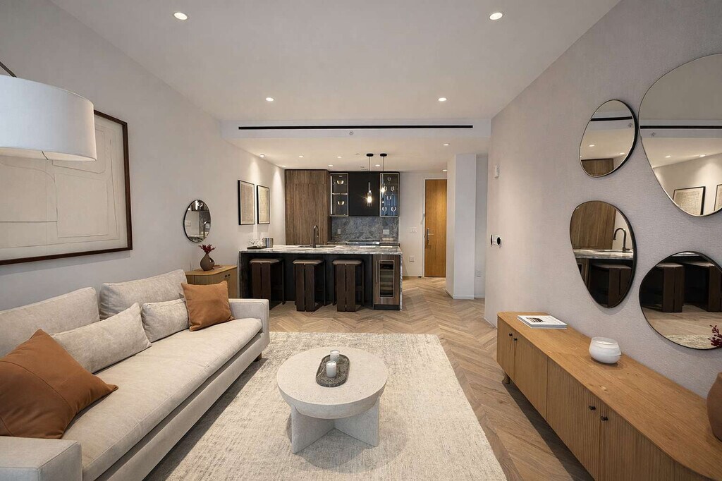 Feel at home in this fully furnished 1-bedroom apartment at The Florian Gramercy Park, offering 725 sq ft of living space. This residence features 10-foot ceilings and oversized south-facing windows, creating a bright and refined living space. The modern kitchen is fully equipped with premium Sub-Zero and Wolf appliances, marble finishes, and a waterfall-edge island. The bedroom offers generous closet space, while the spa-inspired bathroom includes a soaking tub and glass-enclosed shower. Additional conveniences include keyless entry, an in-unit washer and dryer, and smart climate control. Residents enjoy full-service building amenities such as a 24-hour doorman and concierge, residents’ lounge, fitness center, full-service spa, outdoor courtyard, and a rooftop terrace with panoramic city views. Located in the heart of Gramercy Park, this home offers luxury, comfort, and convenience. Gramercy is known for its quiet elegance, historic architecture, and tree-lined streets. The neighborhood is home to an excellent selection of restaurants, cafés, and bars and is ideally located near Flatiron, Union Square, and Midtown, providing quick access to shopping, nightlife, and major business hubs. With multiple subway lines nearby, Gramercy offers seamless connectivity while maintaining a peaceful, upscale atmosphere. [SI]