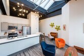 Feel at home in this 1-bedroom loft located in downtown Rochester's historic Whiting Building. This stylish unit offers a unique living space. Welcome to this mid-century vintage apartment. As you enter, you are greeted by a long hallway from which you access the bathroom, elevated sleeping quarters, and a spacious living area. The high ceilings and large 18’ x 8’ skylight over the kitchen allow natural light to illuminate the space, enhancing the vibrant and airy atmosphere. The mid-century furnishings add a touch of retro elegance, with a comfortable sofa and armchairs arranged around a sleek coffee table. The carefully curated decor includes original artwork by Alexander Calder, providing a nod to the past while maintaining a contemporary feel. The kitchen boasts modern stainless steel appliances, including a refrigerator, stove, oven, microwave, and dishwasher, and quartzite countertops. As part of the ApartHotel experience, you can access various amenities like a fitness center, communal lounge areas, and laundry facilities. Parking is available. Located in downtown Rochester's East End, you'll be within walking distance of restaurants, shops, entertainment venues, and vibrant city life. Move-in and move-out are tech enabled. [SI]