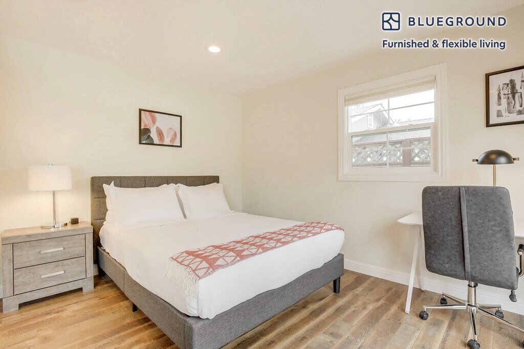 Show up and start living from day one in Burbank (San Jose) with this lovely three bedroom Blueground house. You’ll love coming home to this thoughtfully furnished, beautifully designed, and fully equipped Parkmoor home. (ID #SFO1600) The advertised rate of $4,320/month is the lowest available price, based on a 11 month(s) and 29 day(s) stay with a move-in date of February 26, 2026. Rates vary depending on the duration of stay, season, and other parameters. For exact pricing and additional pricing components, please visit our website and enter your desired move-in and move-out dates. The rate is applicable when billed upfront; it can be higher if billed in multiple payments. Brokers are welcome to reach out. Were you looking for an unfurnished lease? Try Blueground instead and upgrade from unfurnished to furnished living: - Furnished at rates comparable to unfurnished - No setup or furniture costs - save thousands - Move-in ready - save time, just bring your suitcase Designed with you in mind Thoughtfully designed with bespoke finishes, modern furnishings, and a fully equipped kitchen, you’ll enjoy that “I’m home” feeling with this Blueground house. Whether you’re lounging in your beautiful living room streaming the latest and greatest entertainment on the smart TV or premium wireless speaker, or getting some well-earned rest on the superior quality mattress with luxury linens, you’ll fall in love with everything this Parkmoor house has to offer. This house also offers in-house laundry. Sleeping arrangements Queen Bed, 63in/160cm Queen Bed, 63in/160cm Queen Bed, 63in/160cm Amenities Building amenities unique to this three bedroom house include an on-site: - Dryer - Washing machine - Parking - Pets allowed Arrival and ongoing support The entire house is yours to enjoy! Throughout your stay, you’ll have access to our Client Experience team through the Blueground App. You can schedule additional cleanings, submit maintenance requests, and view our neighborhood recommendations with just a few taps. We’ll share all details upon confirmation of your stay. Other things to note This Blueground house has flexible lease options, allowing you to book it for one month, a year, or more. Pets are welcome, though weight limits and breed restrictions apply and may incur fees. Parking is offered based on availability and is subject to a fee. Please keep in mind that this is a walk up building. We take great pride in ensuring every photo displayed is shot in our own units with our actual furnishings. That said, we regularly refresh our decor and furniture arrangement, which may differ from what’s pictured. [SI]