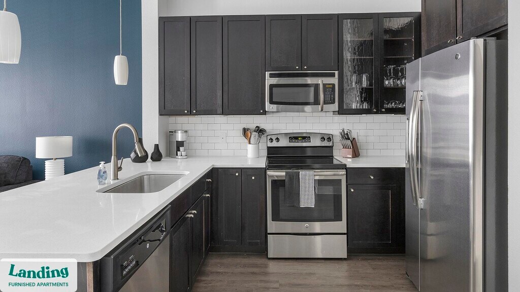 Landing offers flexible lease terms from weeks to months. Please always visit our website or contact us for the latest pricing & availability. Stay longer, save more: 6-Month Minimum base rent: starts at $2386/mo 12-Month Minimum base rent: starts at $2210/mo Landing offers flexible leases across a network of over 35,000 fully-furnished apartments throughout 375+ cities so you can rent on your terms, practically anywhere, and avoid the hassle of paying deposits or application fees. Visit to learn about all the benefits of a Landing membership, see our competitive up-to-date pricing, explore available apartments, take virtual tours, and make reservations online without jumping through traditional rental hoops. Landing's apartments at Macallan on Ross are designed for comfortable, easy living, with the ability to stay as long as you like. Experience living with Landing Every apartment is outfitted with all the modern essentials including: custom-designed furnishings, a fully-equipped kitchen with deluxe stainless steel appliances, a gourmet coffee maker, premium linens, Smart TVs, and incredibly fast, reliable internet for working from home. When you live with Landing, you'll enjoy a hassle-free experience with the added benefit of 24/7 access to our dedicated member experience team. Some of the nitty-gritty: a background check and proof of income are required; we're completely smoke-free; bundled utility packages and pricing vary based on length of stay; pet-friendly options available; listed price reflects a 12-month minimum stay.