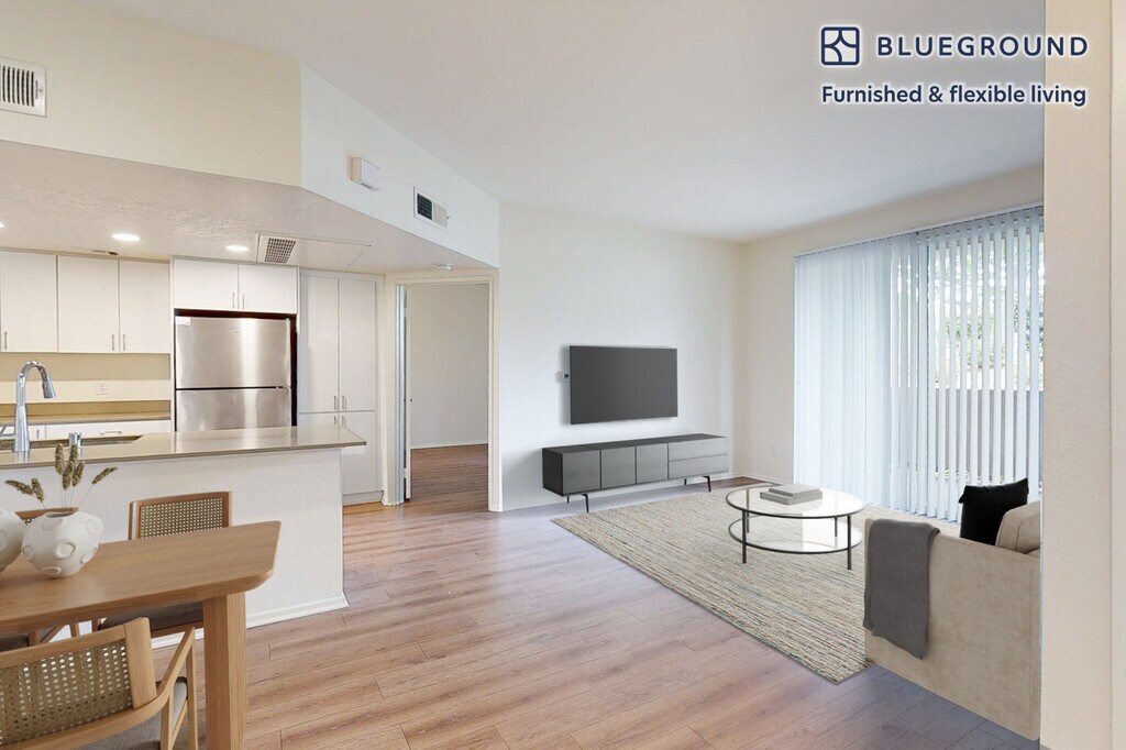Staged photos of matching layout and similar décor Imagery shows same floorplan and building, and similar décor as we finish photographing this new unit. Be the first to rent! Show up and start living from day one in Thousand Oaks with this cozy two bedroom Blueground apartment. You’ll love coming home to this thoughtfully furnished, beautifully designed, and fully equipped Thousand Oaks home. (ID #LAX9065A) The advertised rate of $3,640/month is the lowest available price, based on a 12 month(s) and 29 day(s) stay with a move-in date of November 7, 2025. Rates vary depending on the duration of stay, season, and other parameters. For exact pricing and additional pricing components, please visit our website and enter your desired move-in and move-out dates. The rate is applicable when billed upfront; it can be higher if billed in multiple payments. Brokers are welcome to reach out. Were you looking for an unfurnished lease? Try Blueground instead and upgrade from unfurnished to furnished living: - Furnished at rates comparable to unfurnished - No setup or furniture costs - save thousands - Move-in ready - save time, just bring your suitcase Designed with you in mind Thoughtfully designed with bespoke finishes, modern furnishings, and a fully equipped kitchen, you’ll enjoy that “I’m home” feeling with this Blueground apartment. Whether you’re lounging in your bright living room streaming the latest and greatest entertainment on the smart TV or premium wireless speaker, or getting some well-earned rest on the superior quality mattress with luxury linens, you’ll fall in love with everything this Thousand Oaks apartment has to offer. This apartment also offers in-apartment laundry. Amenities Building amenities unique to this two bedroom apartment include an on-site: - Dryer - Washing machine - Parking Arrival and ongoing support The entire apartment is yours to enjoy! Throughout your stay, you’ll have access to our Client Experience team through the Blueground App. You can schedule additional cleanings, submit maintenance requests, and view our neighborhood recommendations with just a few taps. We’ll share all details upon confirmation of your stay. Ideally Located This furnished home is located in Thousand Oaks, a city in northwestern Los Angeles. An ideal home for outdoor enthusiasts thanks to Wildwood Regional Park and other green spaces, Thousand Oaks is home to nearly 150 miles of trails for hiking, mountain biking, and horseback riding. Residents can also soak up the beauty of nature at Conejo Valley Botanic Garden or the Gardens of the World. Enjoy art? Discover a range of cultural events, concerts, and theater performances at the Thousand Oaks Civic Arts Plaza. Other community hot spots include The Oaks shopping center and restaurants like Moqueca Brazilian Cuisine or The Stonehaus, a European-style café with wine tasting and artisanal foods. Other things to note Photos show same floorplan and building, and similar decor as we finish photographing this new apartment. This Blueground apartment has flexible lease options, allowing you to book it for one month, a year, or more. Parking is offered based on availability and is subject to a fee. Please keep in mind that this is a walk up building. We take great pride in ensuring every photo displayed is shot in our own units with our actual furnishings. That said, we regularly refresh our decor and furniture arrangement, which may differ from what’s pictured.