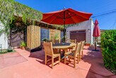 Relax with the whole family at this graceful throwback Spanish/Mid-Century blend North Park home, located within close walking distance to shops, restaurants, public transportation, and freeway access. Designed by a renowned audio engineer and record producer for the modern family, this home features a vintage sound system, tube amp, and record player, along with a vintage and local record collection. The home is equipped with solar power, a Level 2 EV Charger, two private tandem parking spots, a king-size bed, a massive master bath and spa, blazing-fast Wi-Fi, a heated seat bidet that opens upon entry, room-darkening shades, an outdoor fountain, and outdoor lounging and dining areas. The master bedroom includes a king-size bed, a walk-in closet, and a large two-sink bathroom with a jacuzzi tub and European shower. The second bedroom has a queen bed, and there's a full sofa bed in the common area. The kitchen boasts upscale stainless steel appliances, including a Viking oven and stove range, and a Sub-Zero extended fridge and freezer, with essentials to get you started. Ask about our add-ons, including early check-in, late check-out, Pack 'n Play crib, beach wagon, surf and boogie boards, EV charging, and car rentals. Pets are welcome with a $100 fee per pet per stay. Please keep pets off the beds, comforters, and sofas to avoid extra cleaning or replacement fees. Undeclared pets will incur a $200 fee per pet. This home is highly walkable, just a few blocks from all that North Park has to offer, including amazing restaurants, bars, nightlife, shopping, Balboa Park, and the San Diego Zoo. Public transportation options such as buses, Ubers, and Lyfts are readily available nearby. The sectioned-off back music studio is normally quiet but is used by the owner and recording artists, so be considerate of your neighbors. Shoes should be removed upon entry, and quiet hours are from 10 p.m. to 9 a.m. No parties are allowed, and undeclared guests will be charged $65 per person. Smoking indoors will incur a $200 charge. Do not unplug, tamper with, or cover any Wi-Fi, outdoor security cameras, or locks, as fees will apply. Filming or production work is allowed with an additional fee. For monthly guests, there is a utility cap of $200, and guests will be responsible for any overages. The neighborhood is very safe, but always lock your car doors and keep windows rolled up. The home offers blazing-fast gigabit Wi-Fi and three workspaces for remote productivity, including a work desk. Entertainment amenities include a smart TV with streaming services such as Netflix, Disney+, Hulu, and Apple TV. Registration Number: STR-08405L