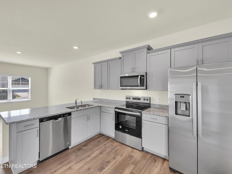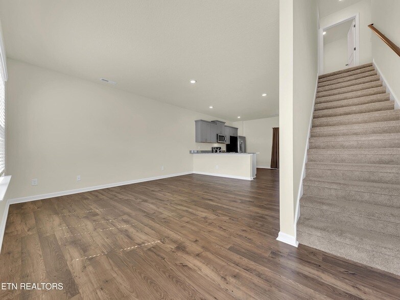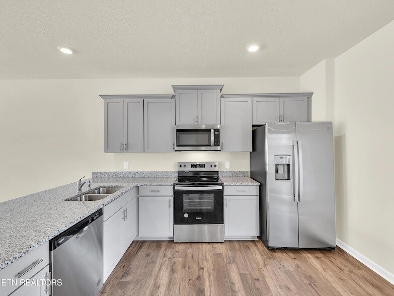 New construction in Creek Bridge Glendale floor plan offering 4 bedrooms, 2.5 baths, and a 2-car garage on a 0.17-acre lot. Open-concept main level with upgraded RevWood flooring, family room, and kitchen featuring gray shaker-style cabinets, granite countertops with 4'' backsplash, and stainless steel Whirlpool appliances. Upstairs includes a spacious owner's suite with walk-in closet and dual vanity bath, plus three additional bedrooms, full bath, and laundry.Additional features include an 8'x10' rear patio, double bowl sinks, ceiling fan prewires, media panel, blinds, and garage door opener with remotes. This home is equipped with Smart Home Features including a Honewell Thermostat, Kwikset Keyless entry, Video Door bell, Amazon Echo Pop and more, offering convenience and piece of mind. Professionally landscaped yard with community sidewalks and HOA. Convenient Maryville location close to schools, shopping, dining, airport and the great smoky mountains for outdoor adventures!