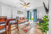 Discover the perfect balance of relaxation and adventure at this 2-bedroom, 1-bathroom waterfront apartment in Cocoa Beach. Steps from the ocean and overlooking the Indian River Lagoon, it’s your ideal tropical getaway. Enjoy the waterfront location with a quick walk to the Atlantic Ocean's white-sand beaches while being on the Indian River. The apartment features a king bed in the primary bedroom and a queen bed in the guest room, both with cozy linens. Take advantage of the private dock, breathtaking sunsets, and views of the Indian River Lagoon. The fully equipped kitchen boasts granite countertops and stainless-steel appliances for easy meal preparation. Relax in the cozy living room with a sectional, flat-screen TV, and high-speed Wi-Fi. Plenty of space for on-site parking at the unit. While we love all furry friends, only dogs are allowed at this property, with a fee of $100 per pet, per stay. Cocoa Beach is among Florida’s top ten beach towns located on Florida’s Space Coast. World famous for its calm and consistent waves, the Kennedy Space Center, and home to the greatest surfer of all time, 11x World Champion, Kelly Slater. Don’t forget to visit Downtown Cocoa Beach located just 5 minutes away, where you will find restaurants that will leave you craving more, live music, and nightlife! Located just 60 miles east of Orlando, close to some of the world’s best theme parks, including Disney World and Universal Studios, this small beach town is one of Florida’s most desired vacation destinations. Find your serenity and adventure offshore fishing in the Atlantic Ocean, kayaking, paddleboarding and waterskiing on the Indian River Lagoon or watching a rocket take off into space in your own backyard. Just a 30-minute drive north and you will find yourself in the hub of the nation’s human space program at the Kennedy Space Center Visitor Complex where you can walk the same footsteps that preceded Neil Armstrong’s journey on the moon. This small beach town full of sun, sea and tranquility is your home-away-from-home and the next vacation destination you don’t want to miss! Our digital locks let you arrive and check yourself in, but we’re here if you need us. Message us on the app if you need anything during your stay. For urgent matters, call the number provided. To ensure a comfortable start to your stay, we provide an initial stock of essentials like paper towels, toilet paper, tissues, coffee pods, creamer, sugar, light cleaning supplies, garbage bags, sponges, dish soap, and dishwasher tabs. If you need additional supplies during your stay, please plan to replenish them as needed. Mailbox access is not available for guests. [SI]