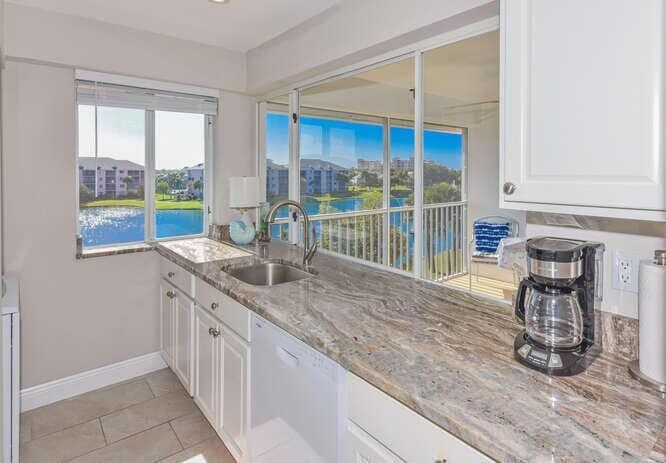 Available 4/29/26. Gorgeous Lake & Fountain view from this 4th floor condo in elevator bldg. Screened balcony - perfect tranquil setting to wake up to every AM. You will enjoy dining on your balcony or when in the mood visiting the Twisted Tuna Restaurant near-by for meals away from the kitchen. Fully furnished & appointed. Tile through out. 1.5 bathrooms with a walk in shower. King size bed. Wifi, basic cable, water included. Walking distance to Jupiter Beach, Restaurants, Movies, Harbourside, River Walk Boardwalk along the Intracoastal. Community Pool, Tennis. Tenant pays electric. $2200/mo is rate for a term of 6 mo 1 day. $25 Parking Pass per vehicle to Jupiter Bay.Pick up Truck under 1/2 ton may be ok with Board approval.