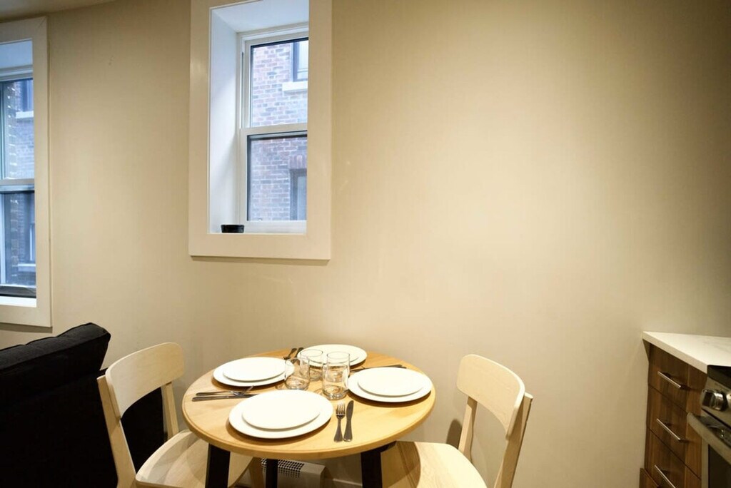 This modern and simple new two-floor 1-bedroom apartment is just a 5-minute walk from Montreal's best restaurants, shops, and entertainment. Located on the 1st floor, you will need to take around 8 steps, and there are about 10 steps inside the unit. The apartment features 1 closed bedroom, 1 bathroom, a full kitchen, and a smart TV, ensuring you feel at home. This newly renovated 1-bedroom apartment spans two floors and boasts new furniture, a fully stocked kitchen, and upgraded bathrooms. You'll enjoy top-of-the-line appliances, and we also provide some complimentary coffee and supplies. A baby crib is available for an additional fee, and pets are accepted at our discretion for a fee. You're steps away from St-Catherine Street, downtown shopping, McGill University, the Museum of Fine Arts, and the Grand Prix festivities on Peel, Crescent, and Saint-Laurent Street. Public transportation is available within a 2-minute walk, making it easy to explore the city. The building is equipped with security cameras in the common area hallways, stairwells, and entrances to ensure the safety of all tenants. All guests must adhere to building policies, rules, and general maintenance requirements. You must fill out the check-in form before your arrival, and a quick and secure verification process is required after booking. If a reservation does not pass our screening criteria, we will be unable to proceed with the stay. This policy helps maintain the highest standards for our properties and provide the best experience for everyone. If you have any questions about AC location, heating, noise levels, pets, parking, mobility issues, or any special needs or requirements, be sure to contact us before booking to ensure our place is a good fit for you.