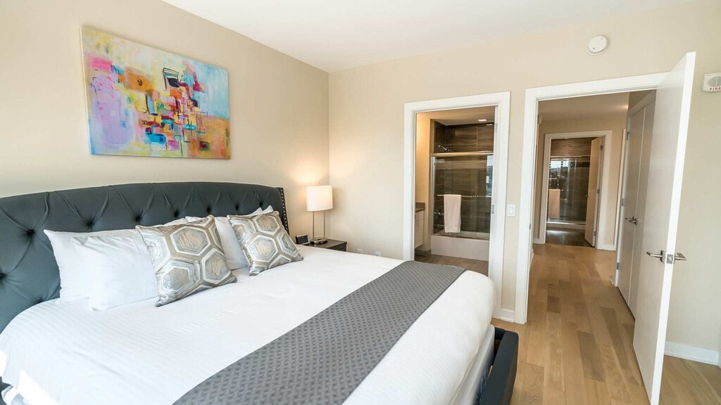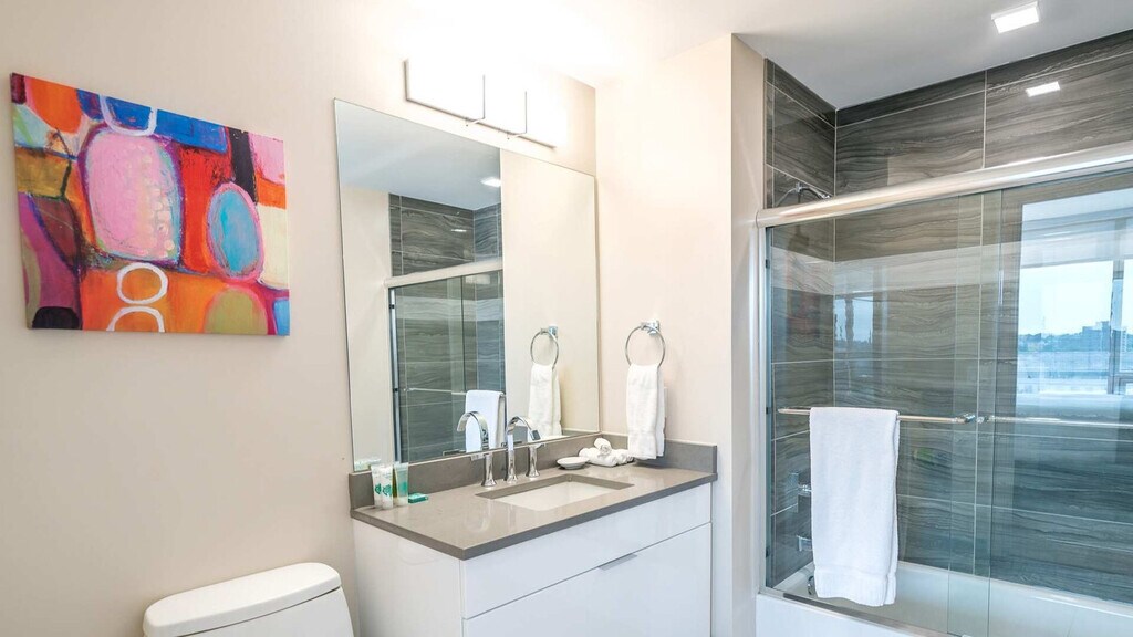 Experience the ultimate in relaxation and convenience at this state-of-the-art fitness center and rooftop terrace, complete with fire pits and BBQ grills, perfect for unwinding after a long day. Refresh yourself with a dip in the pool or enjoy the best of downtown Stamford with its vibrant eateries, waterfront amenities, and bustling shops just steps from your door. Plus, with the train station only a short walk away, the city is always within easy reach. This spacious 1,156 sq. foot two-bedroom, two-bathroom apartment is a corner unit with floor-to-ceiling windows providing downtown views, where natural light is abundant. Downtown Stamford is a hub of activity, boasting diverse dining options, cultural attractions like The Palace Theatre, and entertainment venues such as the Stamford Museum and Nature Center. The nearby vibrant Harbor Point district invites residents and visitors to discover the bustling boardwalk, enjoy waterfront dining, and partake in community events. For outdoor enthusiasts, Cove Island Park provides a picturesque retreat, while Mill River Park offers recreational activities and scenic landscapes. You have the best of downtown Stamford’s eateries, waterfront amenities, and bustling shops right outside your door. The city is never too far from home with the train just footsteps away. Living at Atlantic Station in Stamford, CT, provides convenient access to public transportation. The nearby Stamford Transportation Center offers easy connections to New York City and other destinations via Metro-North Railroad and Amtrak services. Additionally, local CT Transit bus routes, such as the 311 and 971, make it simple to navigate Stamford and the surrounding areas. Check-in instructions will be provided via email 7 days and 24 hours before check-in. Quiet hours are between 22:00 and 06:00.