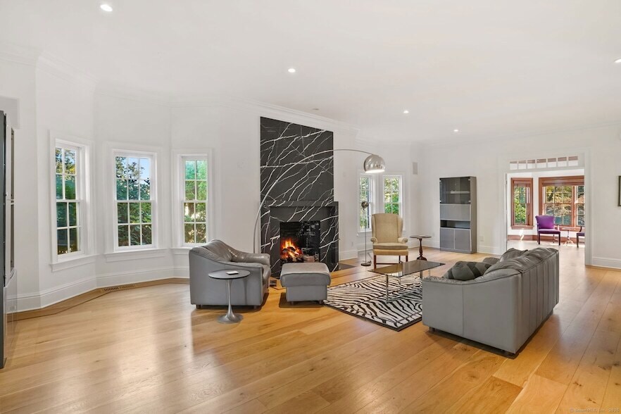 An exceptional home in Westport's Greens Farms neighborhood, 355 Greens Farms Rd showcases refined scale, flexibility, and location. Four beaches are clustered within roughly a 2.5-3 mile radius, making the property 5-10 minutes to multiple beaches. This impressive residence delivers expansive living with thoughtfully designed spaces suited for modern lifestyles. Offered as a fully furnished summer rental, the property presents a truly turnkey experience. High-quality furnishings enhance the home's scale and character, allowing immediate enjoyment without the need for additional setup. The home features five to six generously sized bedrooms, allowing the layout to adapt effortlessly to a variety of needs. Two dedicated home offices provide polished, private environments ideal for focused work or creative use. Throughout the residence, abundant natural light and well-balanced proportions elevate the sense of comfort and openness. Living areas are designed for both grand entertaining and everyday ease, with multiple spaces that flow seamlessly while maintaining definition and purpose. The home's size allows for elegant furnishing, ample storage, and the ability to enjoy each room without compromise. Outdoor dining on the expansive deck overlooking the pool & spa provides relaxing summer evenings. Ideally positioned, the residence is close to the Greens Farms train station and major highways.
