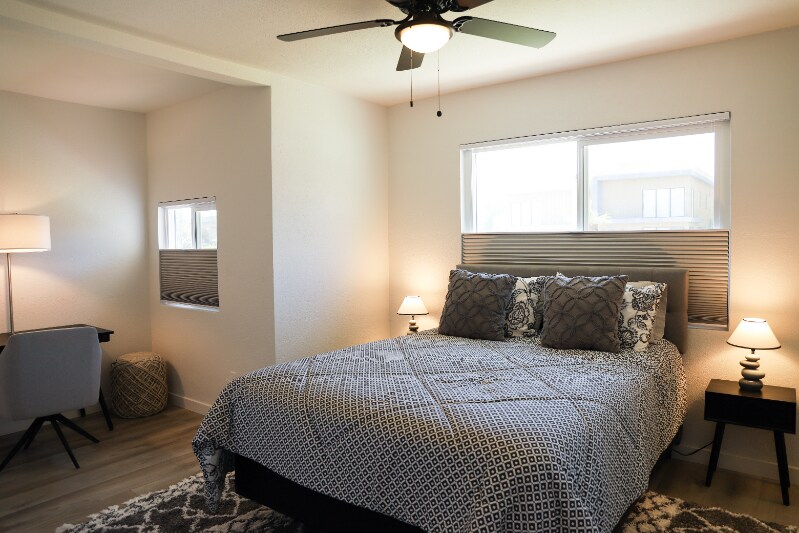 Property Id: 2146492 Perfect for: -Traveling healthcare professionals -Digital nomads -Business travelers -Corporate stays -Temporary relocations -Vacation retreats -Family getaways Cozy Cortez is a bright, spacious, and clutter-free home offering all the modern conveniences you need for a relaxing stay! This home features 3 bedrooms and 2 full bathrooms: The Tan Room -Primary bedroom with queen bed -En-suite bathroom with standing shower -Walk-in closet -Sliding doors to the pool -Smart TV -Blackout shades The Gray Room -Queen bed -Home office alcove -Smart TV -Blackout shades The Beige Room -Queen bed -Smart TV -Blackout shades Living Room: -65" Smart TV Kitchen: -Fully stocked for all your cooking needs Bathroom: -Shower and bathtub -Stocked with starter toiletries Laundry Room: -Indoor for your convenience Outside: -Private, beautifully landscaped backyard -Saltwater pool and spa -In-pool sun deck -Poolside lounge chairs -Gas grill -Gas firepit -Sectional seating -Dining table & chairs