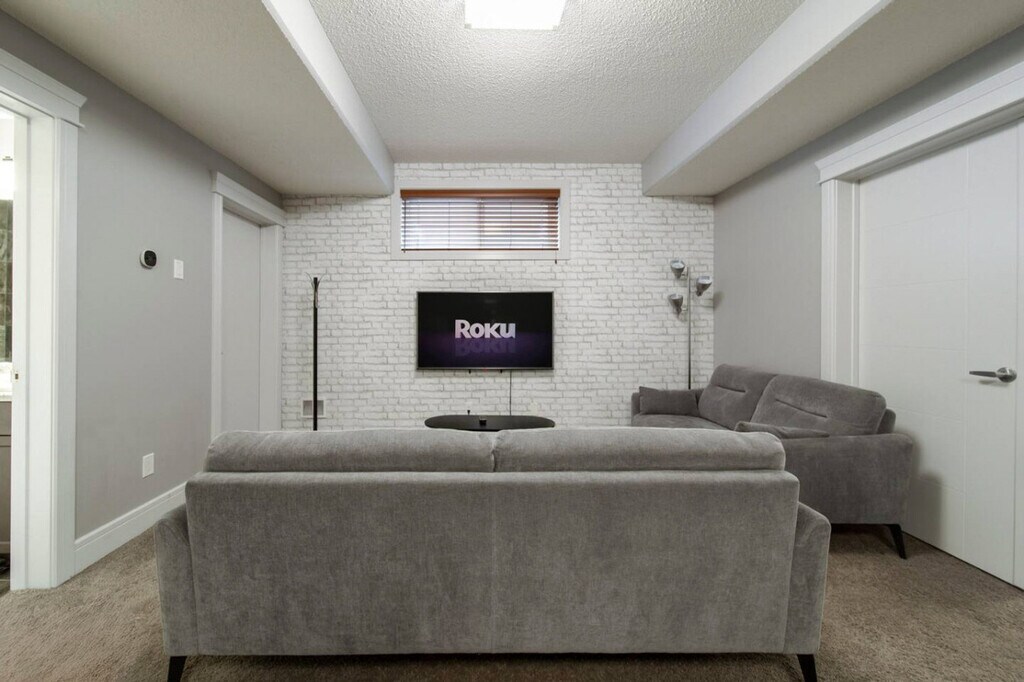 Feel at home in this cozy 2-bedroom basement suite, perfectly situated just minutes from YEG Airport and major roads for easy access throughout Edmonton. Ideal for couples, friends, or small families, this suite offers a comfortable retreat with modern amenities. The apartment features a smart TV for streaming your favorite shows, fast Wi-Fi, and a fully equipped kitchen with stainless steel appliances, including a microwave, fridge, gas stove, and dishwasher. Enjoy the convenience of an in-unit laundry room with complimentary supplies for a hassle-free experience. Parking is available with one stall on the driveway and plenty of free street parking around the home. Located in the inviting Orchards of Ellerslie neighborhood, this property offers a peaceful and private setting with nearby entertainment options. Enjoy well-maintained parks, pathways, and diverse dining experiences. The proximity to Edmonton International Airport ensures easy travel logistics, while downtown Edmonton's cultural attractions are just a short drive away. Public transportation options, including bus routes and ride-sharing services, make exploring the city convenient. This is a non-party home with quiet hours between 10 PM and 8 AM to respect the neighbors. Smoking of any kind is prohibited, and a $250 fee will be charged if evidence of smoking is found. Pets are not permitted unless explicitly authorized, with a $250 fee for unauthorized pets. The maximum occupancy is 4 people, and any additional guests will incur a $40 fee per person per night. Late check-out fees apply if not vacated by 10 AM, and tampering with safety devices will result in a minimum $100 fee. The suite includes a desk space for remote work, complemented by reliable high-speed Wi-Fi to keep you productive during your stay. Registration Number: 527798611-001 [SI]