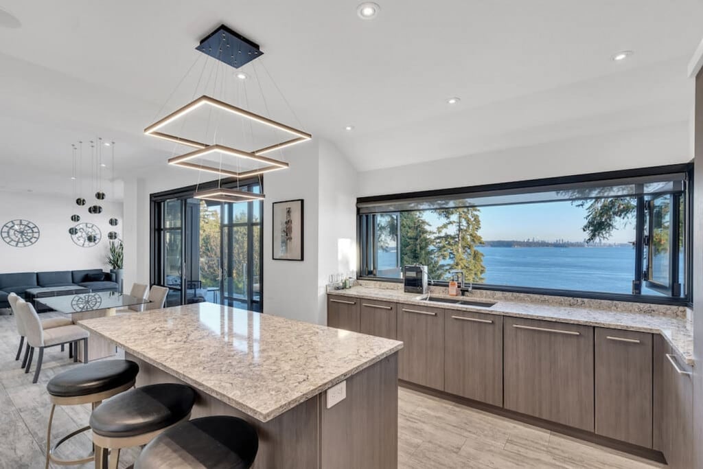 The Sunset Lane Home is a tranquil and luxurious retreat located in the prestigious area of West Bay, West Vancouver. This property offers unparalleled views of the ocean and coast, inspiring guests with the natural serenity of the area. The home features a modern monochromatic color scheme and an open-concept layout, enhanced by large windows and patios that create a contemporary and breathable atmosphere. The main floor includes a large open living space seamlessly connected to the kitchen and an additional cozy living area. A powder room with a touchless water handle is conveniently located at the front door. The large patio is equipped with two electric heaters, a fire pit, and comfortable outdoor furniture, perfect for relaxation. The Sunset Lane Home is characterized by modern design and high-tech features, offering a functional and breathable living environment. The main floor comprises a spacious open living area, a kitchen, and a cozy additional living space. The master bedroom on the main floor features a king-size bed, a full walk-in closet, and a luxurious bathroom with a separate shower and bathtub. The second and third bedrooms are located on the downstairs level, each with an en-suite bathroom and closet. A pullout couch provides additional sleeping quarters for guests. The home is equipped with smart features such as a smart lock front door, touchless light switches and water taps, a Kangen water dispenser, and a fully filtered home water system. Parking is available on the street from two white markers on either side of the home. The property includes a full 2-car garage and driveway. Paddleboards are available for guest use, with beach access just a two-minute walk away. West Bay is a prestigious part of West Vancouver known for its stature and status within the local and international community. The neighborhood features hidden beaches, postcard-perfect views, and outstanding west coast architecture. Nearby attractions include Sandy Cove, West Bay Park, Stearman Beach, and the Point Atkinson Lighthouse at Lighthouse Park, a National Historic Site. The area offers world-class skiing and snowboarding at Cypress Mountain and hiking and bird watching on the Baden-Powell trail. The Gleneagles Community Centre provides an aquatic center, ice arena, and seniors’ activity center. A personal vehicle is recommended for getting around, with Uber and Lyft available in the area. The property features a front doorbell camera for security. Guests are encouraged to park as close to the curb as possible when using street parking, as it is a small street. Garbage should be left in the bins on the street for pickup every Thursday. For any questions about the home's smart features and amenities, guests are encouraged to reach out. [SI]