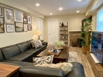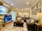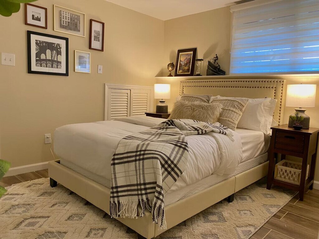 Experience a cozy classic two-story high ranch dream on the Jersey Shore! Conveniently located on a quiet street surrounded by nature yet just a short ride from the beach and Asbury Park, this home offers a tranquil retreat. You must climb a few stairs to enter using the front door of the home. Forget your worries as you step into this luxurious and cozy sunlit 5-bedroom, 2-bath smart home. Choose between having breakfast enjoying a view overlooking a sparkling stream through a large bay window in the eat-in kitchen or simply sit back and relax in the family room while watching your favorite TV show on a 65” smart TV. The upper level features a sunlit kitchen leading to a beautifully designed dining room with ample space to seat 6-8 adults, and three quaint and charming bedrooms with brand new mattresses. The large, gorgeous fully subway-tiled bathroom features a walk-in shower and tub, his and her sinks, and heated floors for those cold nights. The lower level offers a super cozy living room with a large genuine leather sectional, 65” smart TV, beautiful art, and a wood-burning stove. Additionally, there are two super comfortable bedrooms and a full bathroom with a walk-in shower. The laundry room features a spare refrigerator/freezer and a smart washer/dryer for your convenience. Private in-ground pool is only open during certain times of the year, please inquire first before booking. Conveniently located on a quiet street surrounded by nature yet just a short ride from the beach and Asbury Park, this home offers a tranquil retreat. This is a smart home equipped with smart light switches throughout the home that have sensors and a camera lens; however, they do not record or store any data online. They can be used as an intercom between devices, which only you have access to if you choose. These smart light switches are equipped to manually block the sensor by sliding the lever to cover the lens at any time. High-speed Wi-Fi and smart home connectivity make this home remote work-friendly.