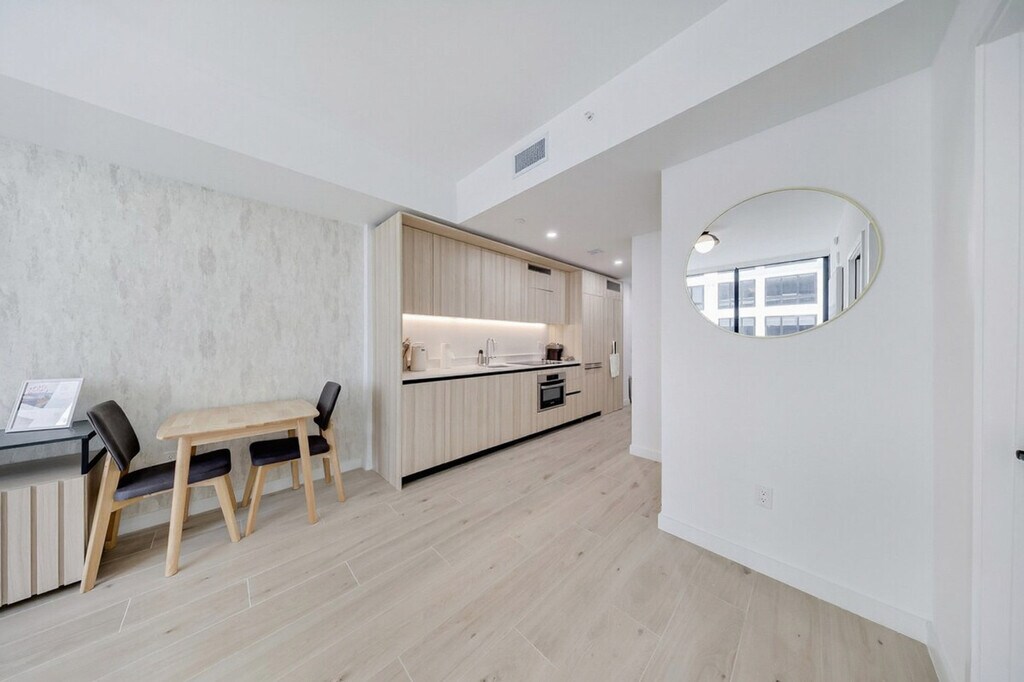 Feel at home in this luxury 1-bedroom apartment located in the prestigious District 225 in Downtown Miami. This modern unit features high-end amenities and an open-concept living space. Over 25,000 square feet of amenity spaces offer opportunities to connect with neighbors, stay in shape, take advantage of co-working spaces, or relax in the South Florida sun. District 225 offers the ultimate option for residents who are on the go, who love the vibrancy of Miami, and who appreciate the comforts of customized amenities at home. Enjoy access to resort-style amenities including a rooftop pool, fitness center, co-working lounges, racquetball court, basketball court, and climbing wall. Two floors of activity amenities feature a state-of-the-art, fully equipped fitness center that includes a private yoga/spinning room with virtual trainer, an indoor basketball court, a 28-foot-high rock climbing wall, and a regulation-size racquetball court. The co-working floor features private meeting rooms, a conference room, a lounge area, high-speed internet, and a full-service kitchen. The rooftop amenity deck includes a plunge swim spa, fire pit, summer kitchen, and gorgeous views of Downtown Miami and Biscayne Bay. On-demand housekeeping services, a climate-controlled package room, 24/7 security services, high-speed elevators, controlled property access, 24/7 valet services, self-parking, and 24/7 concierge services are available. Free parking is available. Downtown Miami is home to some of the city’s finest cultural institutions, corporate offices, retail destinations, and restaurants, all easily walkable, bikeable, and accessible by car or rail. With everything nearby, anything is possible. [SI]