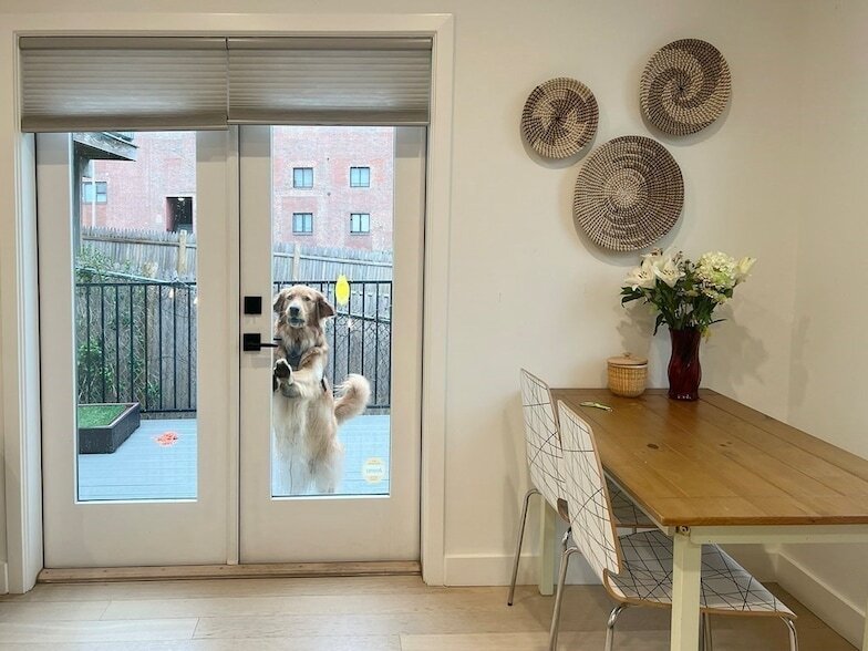 **AVAILABLE SEPT 1ST**The Victoria, rebuilt in 2020 is a boutique building in the center of flourishing Eastie! Unit 3 features open concept living/ dining area with french doors leading to private deck area with glimpses of sunsets and harbor! This 2BR/1BA unit has easy access for dog owners, and all the amenities including in unit laundry, Central heat/ AC, engineered HW floors, tankless water heater and LED lighting. Galley kitchen is modern with European style cabinets, Quartz counters and Samsung stainless appliances. Primary bedroom accommodates K/Q Bed and has ample closet space with glimpses to the neighbors nice backyard! Second bedroom currently used as an office/ guest room. Bathroom is spacious with tiled floors + shower/tub combo and double sink vanity w/ Vigo fixtures. Professionally managed building and dog friendly. On bus route or a ~12 minute walk to Airport or Maverick, blocks to restaurants, gyms and shopping.