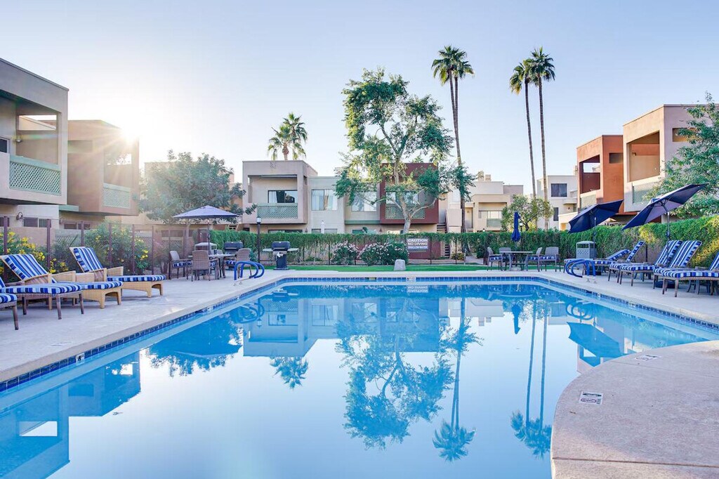 Feel at home in this ideally located 1-bedroom, 1-bath condo on the 1st floor, requiring stairs to enter. It's perfect for your extended Scottsdale getaway! This apartment features 2 Smart TVs, a dedicated workspace, a 4-person dining table, high-top seating, board games, and books. The kitchen is equipped with a refrigerator, stove/oven, dishwasher, microwave, dishware, flatware, cooking basics, and a drip coffee maker. You'll also have access to free Wi-Fi, central A/C and heating, a washer and dryer, linens, towels, and complimentary toiletries. Pets are welcome with a $150 fee, with a maximum of 1 pet. Designated covered parking is available for 1 vehicle, and visitor parking is available on a first-come, first-served basis. Soak up the desert sunshine and unwind in style. Sip a cup of joe on one of the decks, then head to the nearby Cactus League fields or explore the shops at Fashion Square. Ready to relax at the condo? Make dinner your way and dive into your latest show with seamless streaming. Quiet hours are observed from 10:00 PM to 6:00 AM. Events, parties, or large gatherings are not allowed. By booking this property, you agree to comply with City of Scottsdale Ordinance 4655, Section 18-176 (the “Scottsdale Ordinance”). Pursuant to the Scottsdale Ordinance, this property requires a sex offender background check and you agree to provide any additional information required to confirm your eligibility to make this booking. [SI]