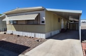 Welcome to Maycliff Estates in Las Vegas, NV. This well designed manufactured home offers 720 sq ft of comfortable living space with a bright and inviting open concept floor plan. The spacious living room flows into the kitchen featuring white cabinets, a peninsula island, a gas stove and a wall oven creating a functional space for both daily living and entertaining. The large primary bedroom provides comfort with a generously sized closet while the additional bedroom offers flexibility for guests or a home office. A full bathroom and convenient in unit laundry room complete the interior. Additional features include dedicated covered parking and a large storage shed providing extra space for tools or seasonal items. This home is designed for both comfort and practicality in a desirable Las Vegas location. Act now and schedule a tour today Opportunities like this are limited and will not last long.