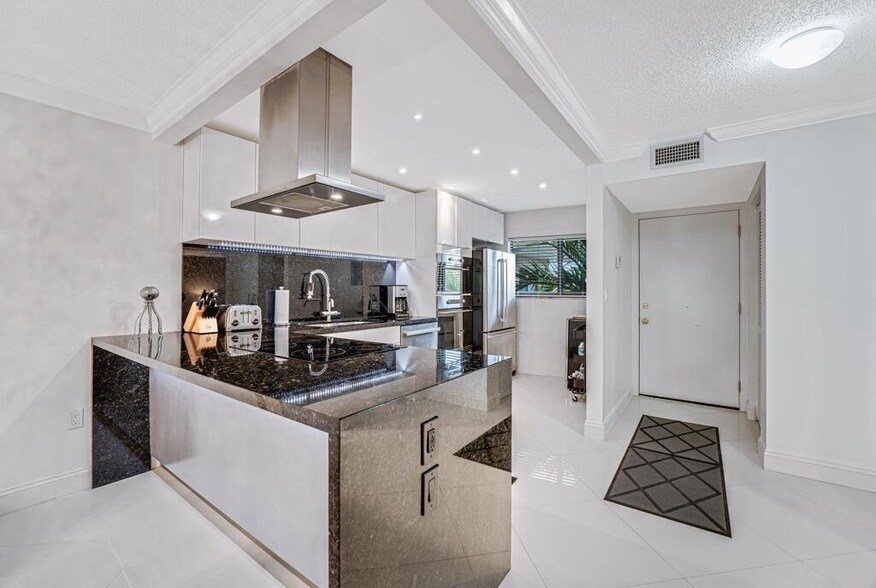 Spectacular, Fully Renovated & Immaculate furnished Unit with Stunning Southern Views! Enjoy breathtaking views of the water, pool, and lush gardens from the expansive screened-in balcony of this beautifully upgraded unit. Completely remodeled in 2023 with high-end finishes, this home features a brand-new AC, impact windows, and elegant diagonal tile flooring. The light, modern kitchen boasts sleek cabinetry, new appliances, a granite backsplash, and a wine cooler. Spacious Scandinavian-inspired bathrooms and a full-size washer and dryer add both style and convenience. A true must-see! This well-maintained Soutgate community offers a serene garden retreat, an Intracoastal-front pool, a sauna, and BBQ area. Enjoy deeded beach access just across the street and shopping and dining close by.