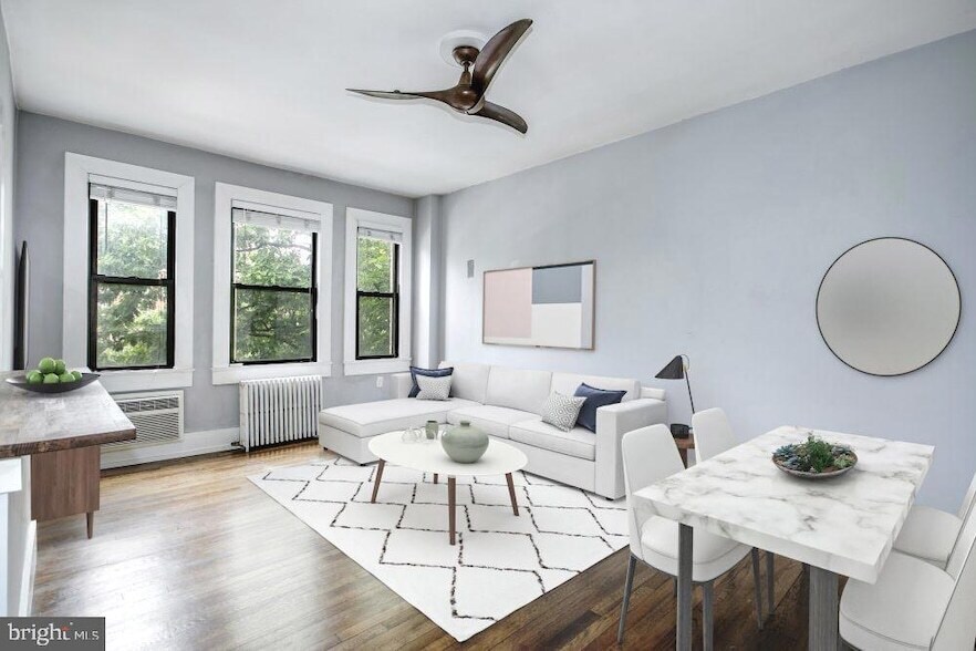 Available May 1 - Welcome to The Woodbine! This meticulously designed one-bedroom unit presents an irresistible combination of modern elegance and convenience. As you step inside, you'll be greeted by an inviting open-concept living space, allowing you the freedom to create a comfortable living room area and accommodate a full-sized dining table. Whether you're unwinding after a long day or hosting gatherings with loved ones, this versatile layout provides the perfect backdrop. The kitchen boasts a complete range of stainless steel appliances, including a gas range for precise cooking. The convenient passthrough with a breakfast bar enhances both functionality and style, making it an ideal space for entertaining guests and enjoying casual meals. Indulge in the generously-sized bedroom, which offers an abundance of space to accommodate a king-sized bed and a separate work, exercise, or seating area. The built-ins and large closet provide ample storage options. Prepare to be captivated by the classically-remodeled bathroom, where a deep soaking tub invites you to unwind and relax. The chic farmhouse-inspired wood detailing adds a touch of rustic charm. Amenities include In-building laundry, an additional storage unit, and access to a grill/picnic patio area. This unit is perfectly situated roughly 500 FEET from the Cleveland Park Metro and minutes to the National Zoo, Target, and popular restaurants including Sababa, Cleveland Park Bar & Grill, Indique, Siam House, and MANY more. 12 MONTH LEASE MINIMUM. Tenant pays electric, cable/internet, and renter's insurance. $150 move-in fee to building,. Site-specified application fee. Security deposit is one month's rent with $350 nonrefundable pet fee. Pets on a case-by-case basis. Household income must be at least 3X the rent. NO SMOKING