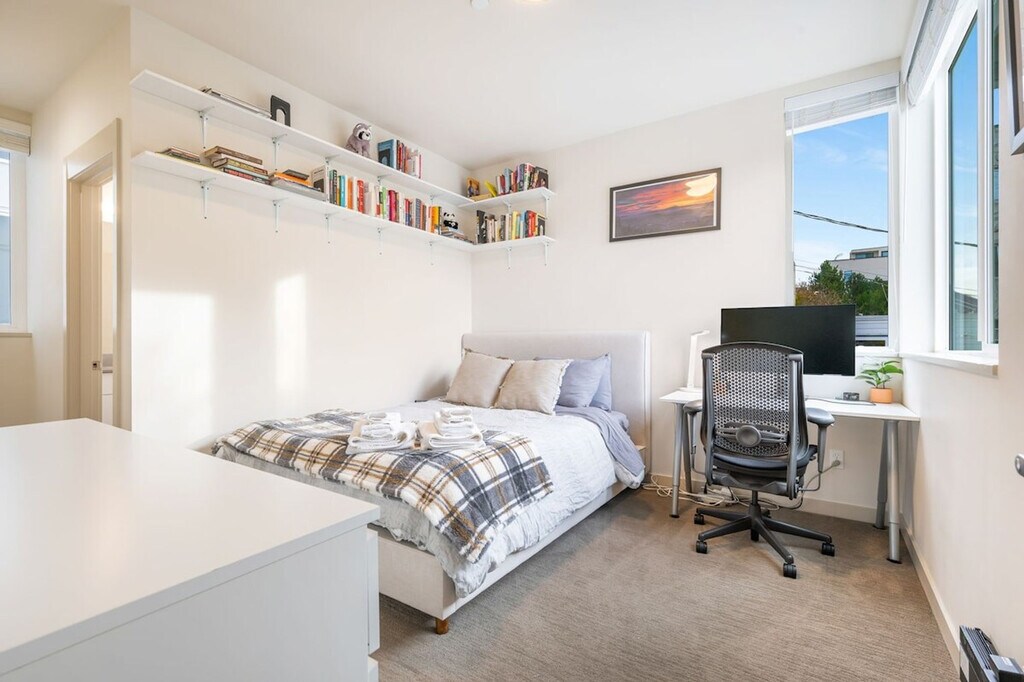 The advertised rate of $4,811/month is the lowest available price, based on a 30 day(s) stay with a move-in date of October 9, 2026. Rates vary depending on the duration of stay, season, and other parameters. For exact pricing and additional pricing components, please visit our website and enter your desired move-in and move-out dates. The rate is applicable when billed upfront; it can be higher if billed in multiple payments. Feel at home in this Seattle traveler's haven! This 1000 sqft townhome has 2 bedrooms and 2 bathrooms. This is a 5-story townhome (including the rooftop) with no step at the entrance. This apartment includes a fully stocked kitchen. The rooftop patio features comfortable outdoor furniture, a fire pit, and a hammock. Enjoy the convenience of an on-site washer and dryer and a smart TV for streaming. Well-trained pets are welcome at $50 per pet per night. Welcome to the Fremont neighborhood of Seattle! Indie shops and hip bars pack this bohemian neighborhood on the north bank of the canal. Quirky outdoor sculptures include the gigantic Fremont Troll, lurking under the Aurora Bridge, and the towering Fremont Rocket. Arty residents and tech workers hang out in the area’s eclectic eateries. The Fremont Sunday Market has art, antiques and food trucks. Cyclists and walkers explore the canalside Burke-Gilman Trail. With a high walk score, many dining, shopping, and entertainment options are within walking distance. Many bus stops are less than a 5-minute walk away. Ride-share services are highly recommended. Kindly note that there is ongoing construction noise coming from across the street, which may cause some disturbance during your stay. This home joins a studio unit next door that is also being rented; all access points are separate. This is a townhome and is not handicap friendly; guests must be comfortable with stairs as there are multiple stories. There is no dedicated parking. Parking on our side of the street is free with no time limit, and parking across the street is free but limited to two hours. Parties and events are strictly prohibited, and quiet hours are between 10 pm and 8 am. Smoking or vaping of any kind is prohibited anywhere on the property, including outdoor areas, as is digital piracy and wearing shoes in the home. There is a $500 fine per violation. Please refrain from allowing pets on furniture or linens, including couches, throws, beds, pillows, and towels. Please do not leave pets unattended; please bring poop bags and pick up after your pets. Includes a dedicated desk with monitor and office chair and fast internet, ideal for remote work. Registration Number: STR-OPLI-19-001363 [SI]