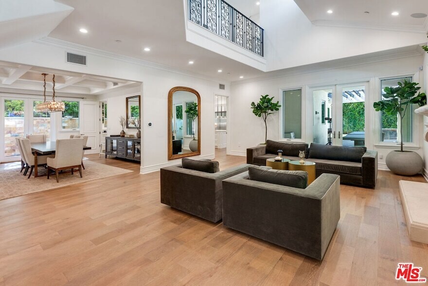 Newer beautiful Mediterranean with over 7000 sf is a fabulous family home. High ceilings, open spaces flow - formal living room, dining room with French doors outside. Hugh kitchen with center island and additional chef's kitchen open to family room, and outside entertaining areas with built-in barbecue and studio. Guest room and office on main level. Upstairs are 4 en-suite bedrooms, large primary with dual closets and fabulous bath. Rooftop deck with area currently being used as a gym. Lower level has a staff bedroom, fabulous movie theater with stadium recliner seating and a huge open space for play or entertaining. Easy beautiful living and walking distance to all the shops, and cafes that the heart of Brentwood offers.