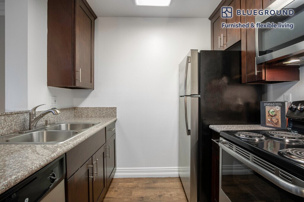 Discover the best of Los Angeles, with this one bedroom apartment in Palms. It’ll be easy to simply show up and start living in this furnished apartment with its fully equipped kitchen, living room, and our dedicated, on-the-ground support. (ID #LAX85) The advertised rate of $2,520/month is the lowest available price, based on a 11 month(s) and 29 day(s) stay with a move-in date of February 1, 2026. Rates vary depending on the duration of stay, season, and other parameters. For exact pricing and additional pricing components, please visit our website and enter your desired move-in and move-out dates. The rate is applicable when billed upfront; it can be higher if billed in multiple payments. Brokers are welcome to reach out. Were you looking for an unfurnished lease? Try Blueground instead and upgrade from unfurnished to furnished living: - Furnished at rates comparable to unfurnished - No setup or furniture costs - save thousands - Move-in ready - save time, just bring your suitcase Designed with you in mind As with any Blueground apartment, you’ll find a thoughtfully designed space complete with beautiful furniture and a fully equipped kitchen in this one bedroom property. And, thanks to our superior quality mattresses, luxury linens, and towels, you can relax knowing you’ll always feel comfortably at home. When you’re ready for some fun, you can take in the Los Angeles vibes or bring the entertainment to you with the premium wireless speaker or smart TV. Sleeping arrangements Queen Bed, 63in/160cm Amenities Building amenities unique to this one bedroom apartment include an on-site: - Basketball Court - BBQ Area - Dryer in building - Elevator - Game room - Swimming pool - Washing machine in building - Lounge - Media room - Parking - Pets allowed Arrival and ongoing support The entire apartment is yours to enjoy! Throughout your stay, you’ll have access to our Client Experience team through the Blueground App. You can schedule additional cleanings, submit maintenance requests, and view our neighborhood recommendations with just a few taps. We’ll share all details upon confirmation of your stay. Other things to note Building amenities may have an extra cost. This Blueground apartment has flexible lease options, allowing you to book it for one month, a year, or more. Pets are welcome, though weight limits and breed restrictions apply and may incur fees. Parking is offered based on availability and is subject to a fee. We take great pride in ensuring every photo displayed is shot in our own units with our actual furnishings. That said, we regularly refresh our decor and furniture arrangement, which may differ from what’s pictured. [SI]