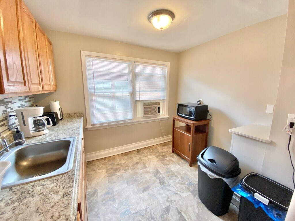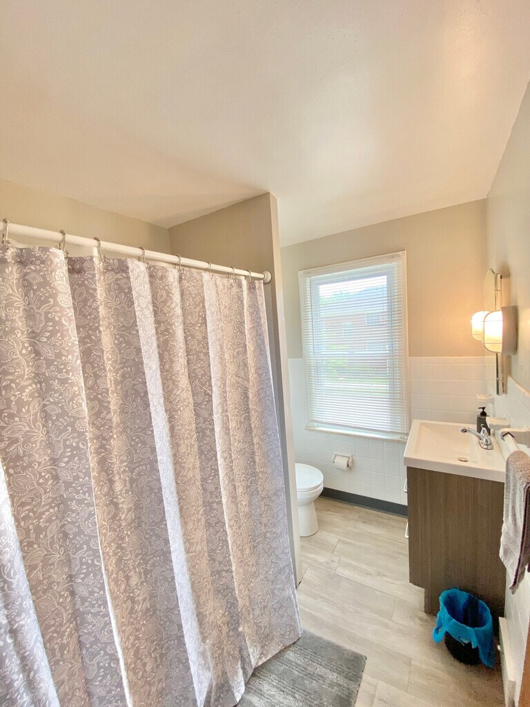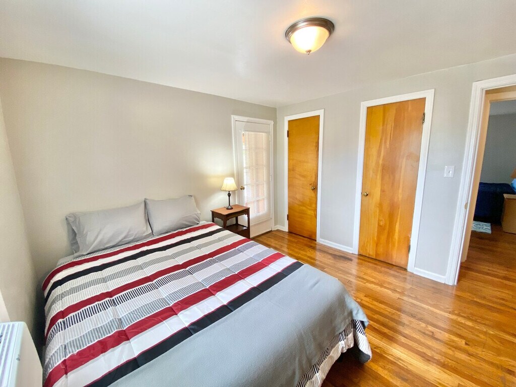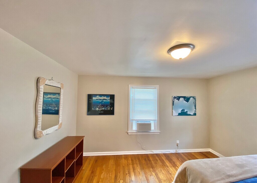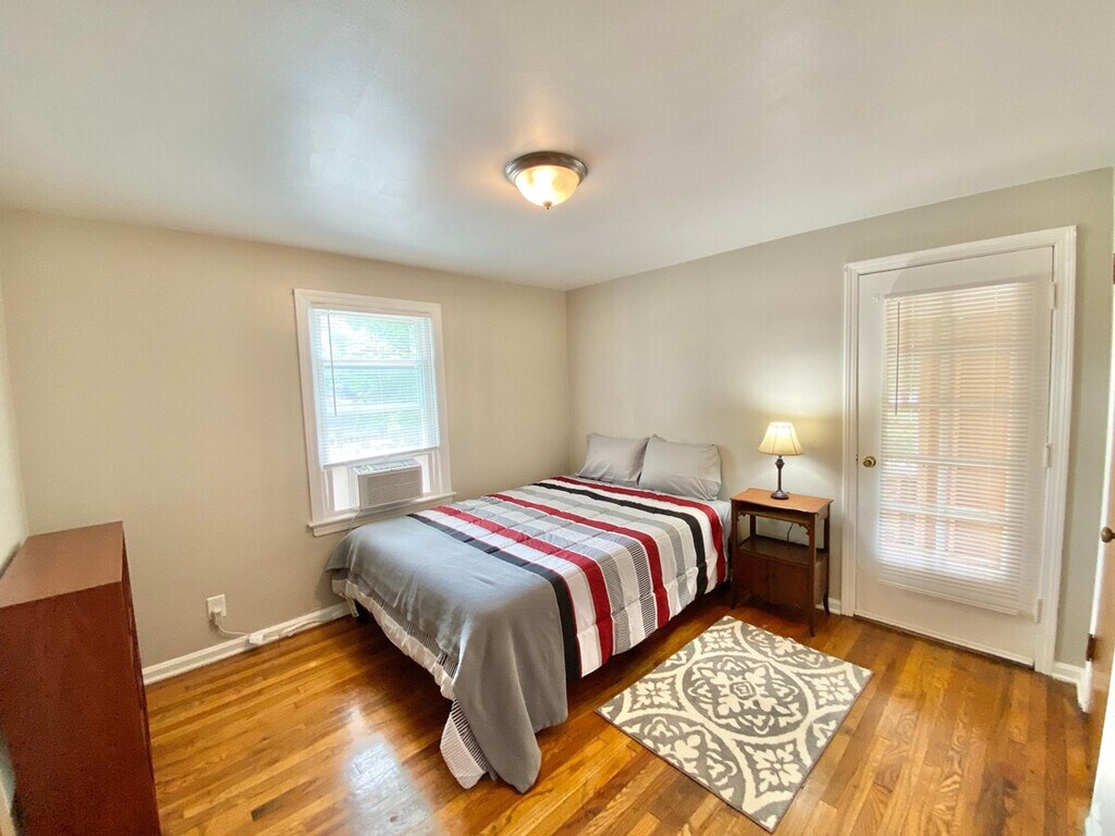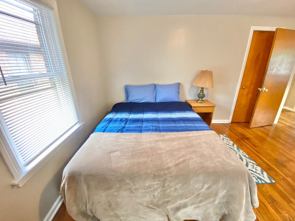 Feel at home in this charming second-floor duplex located in a serene area of Cleveland Heights. This pet-friendly apartment offers a peaceful retreat while being within walking distance to Whole Foods, Starbucks, and Target, and just a short drive to Cleveland Clinic, University Hospitals, and University Circle. The apartment features two queen beds, a spacious kitchen, and a cozy living room with a big Smart TV equipped with Roku. The apartment boasts a spacious kitchen with all major appliances except a dishwasher, hardwood floors throughout, and a dining room that seats four. The living room is designed for relaxation with a leather loveseat, a leather chair, and a desk area set up for working or studying. Enjoy entertainment on the Smart TV with Roku, where you can log into your Netflix, Hulu, or HBO accounts. AC units are provided during the summer for added comfort. Guests are provided with one free driveway parking spot, and there's potential garage space for a small car. Street parking is free during the day but not overnight. Pets are welcome, with the number of pets being negotiable. The cleaning fee is also negotiable and based on the number of occupants, length of stay, and number of pets. Additional services include private chef services, hospital amenities, car transportation, and car charging stations. Nestled in a wooded area of Cleveland Heights, this apartment is a 9-minute walk or 2-minute drive to local conveniences like Whole Foods, Target, and Starbucks. It's a 10-minute drive to Little Italy, Cleveland Clinic, and University Hospitals, and about 15 minutes to Severance Hall and Case Western Reserve University. Enjoy the proximity to shopping, dining, Legacy Village, and John Carroll University. Guests staying between 30-59 days will have a $300 monthly utility cap on water, sewer, trash, electric, and gas. Exceeding this cap by more than $25 will require reimbursement. For stays of 60 days or more, guests are responsible for utility usage except for Wi-Fi and security system. The apartment is located on the second floor, with laundry facilities in the basement, requiring comfort with stairs. No more than two cars are allowed, and street parking is not available overnight. The property is in a wooded area, so occasional wildlife sightings are possible. In the rare event of a pest issue, immediate assistance will be provided. Snow removal is not provided unless more than 3-4 inches accumulate in one day, but snow shovels are available for guest use. Lawn maintenance is handled during spring, summer, and fall. The living room includes a desk area set up for working or studying, making it ideal for remote work. The apartment is equipped with high-speed Wi-Fi to ensure a seamless work-from-home experience. [SI]