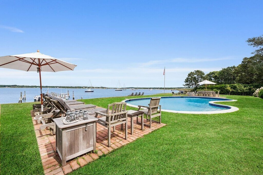 Beautiful private waterfront property, large 5 bedroom 5 bath home with separate guest cottage, Gunite pool and deep water dock. This house has been completely restored to a very high level with an incredibly large kitchen, library, waterside porch, full waterside bar room, outdoor shower and much more, impeccable condition beautifully furnished. Private separate large guest cottage, with bedroom, full bath, living room with bar and large waterside porch, central air, beautiful water views and light Owner/agent [[Rental Registration # 2023-L-0176]]
