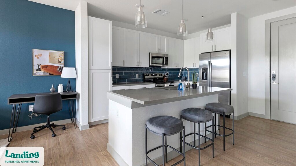 Landing is a top-rated, fully furnished apartment network with thousands of homes across 250+ U.S. cities. With premium amenities, a mobile app to manage your stay, and 24/7 support. Our apartments have everything you need for monthly and longer stays. 6-Month+ Stay base rent: starts at $2263/mo 12-Month+ Stay base rent: starts at $2048/mo Landing's apartments at The Goodwin are designed for comfortable, easy living, with the ability to stay as long as you like. All Landing apartments include: - Fast Wi-Fi - Stylish furnishings - Fully-stocked bathroom - Smart TVs - Comfortable bed - Professionally cleaned - Guest support Stay longer for cheaper! The longer you stay, the bigger your discount. Price advertised is for a 12-month stay, including all utilities and fees, and may vary based on availability. We manage multiple units at this property. While all feature a similar style and furnishings, the layout and specific design elements may vary slightly from the photos provided. Some of the nitty-gritty: a background check and proof of income are required; we're completely smoke-free; pet-friendly options are available; parking is subject to availability.