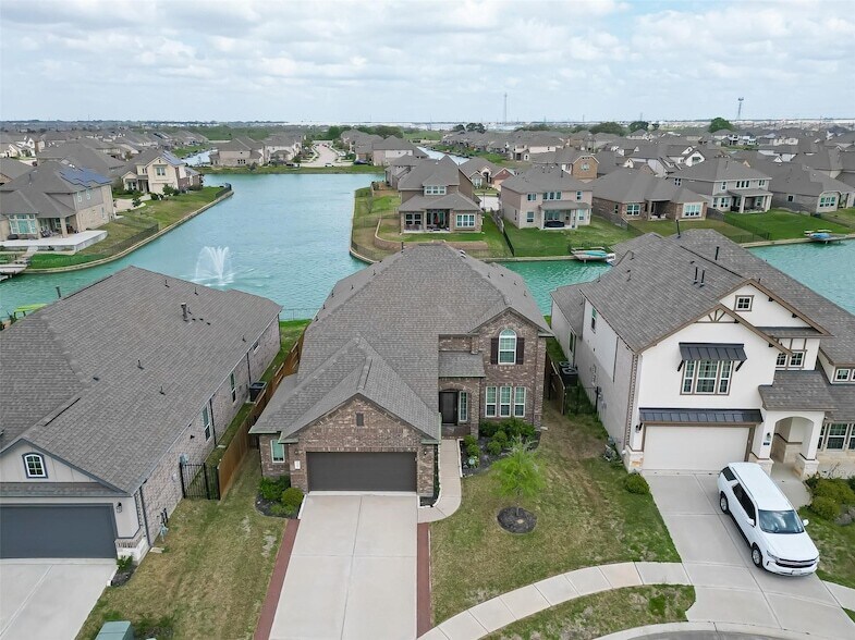 LUXURY LAKEVIEW LEASE! Comes with REFRIGERATOR, WASHER & DRYER - All Samsung Bespoke with great quality! Ready to Move-in. Enjoy upscale waterfront living in this nearly new home located on a quiet cul-de-sac with breathtaking views of the LAKE and a peaceful fountain. HIGH CEILINGS and expansive windows fill the home with natural light, showcasing beautiful water views throughout. This spacious residence offers 4 BEDS and 3.5 BATHS, including a primary suite downstairs, plus a dedicated office. The upgraded kitchen highlights premium granite countertops, designed for both style and functionality. Relax or entertain on the oversized back patio overlooking the water, or take advantage of the private pier for boating and lakeside enjoyment. Lightly lived in and featuring neutral, bright interiors, this home offers comfort, beauty, and tranquility in one exceptional lease opportunity.