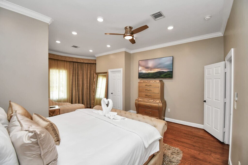 Feel at home in this elegant 3-bedroom, 3.5-bathroom home offering nearly 3000 square feet of refined living space in Houston's vibrant EaDo district. This impeccably maintained home blends luxury with unbeatable convenience. The stylish design features modern touches, soaring vaulted ceilings on the second level, a uniquely designed modern kitchen, and an oversized plush sectional in the living area. A dedicated laundry room includes a high-end Samsung washer and dryer. A Snoo Bassinet and high-chair are available upon request. Enjoy high-speed Wi-Fi and premium Xfinity cable. Private two-car garage parking is available. Located in Houston’s dynamic and culturally rich EaDo district, this home is just minutes from downtown, the Medical Center, Toyota Center, Dynamo Stadium, Minute Maid Park, and the University of Houston. You'll be in close proximity to local hot spots like Chapman & Kirby, Space, Sekai, and Off the Record, and surrounded by top nightlife venues—Space, Sekai, and Chapman & Kirby are all just 5 minutes away. Nearby attractions include the Houston Zoo, Space Center Houston, the Houston Museum District, Buffalo Bayou Park, and The Menil Collection. This property is located in a gated community for added security. [SI]