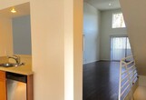 HUGE tri-level townhouse w/ 2 BR (both w/ 2 ensuite bathroom). 3rd BR is an upstairs loft-style w/ full bathroom. Townhouse has a big kitchen that passes through to the dining area and a very spacious living room with working fireplace. A large private balcony entertains very comfortably. Perfect floor plan for roommates as each floor can be private with it's own entrance, bathroom and outdoor space. A balcony on every floor overlooking Los Feliz and beyond + a private rooftop sun deck. Laundry in unit! Large Private garage. Guest parking. Walking distance to Hyperion cafe scene, restaurants and retail.